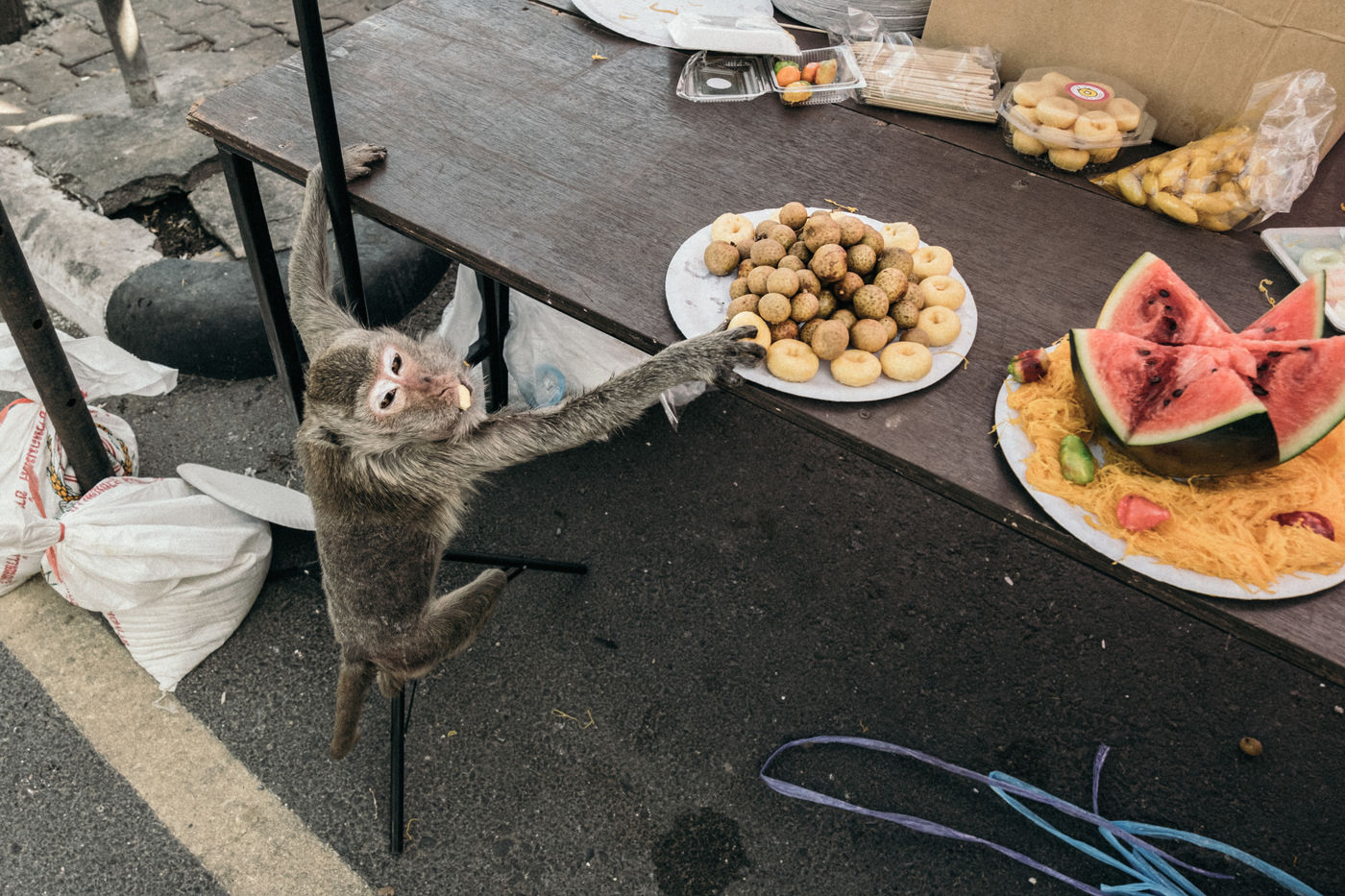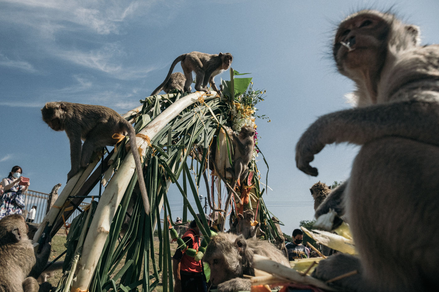 The Monkey Buffet Festival takes place every year on the last Sunday in November in Lop Buri, Thailand. About 4500 macaques living in the city are fed with tables of fruits and vegetables several times a day. This year's event has the theme "wheelchair", dozens of wheelchairs will be donated to people in need at the end of the event.