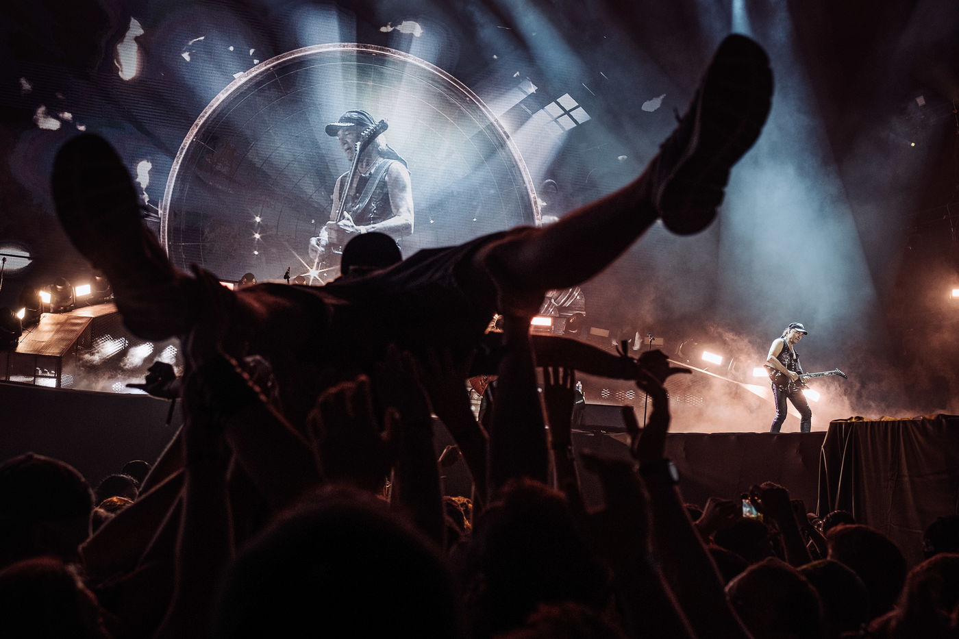 Artists performing on the different stages of Hellfest: Tyler Brant, Whitesnake, Scorpions, Moonspell, Nightmare, Epica, Nightwish, Kadavar, Spiritbox, Metallica.