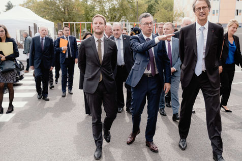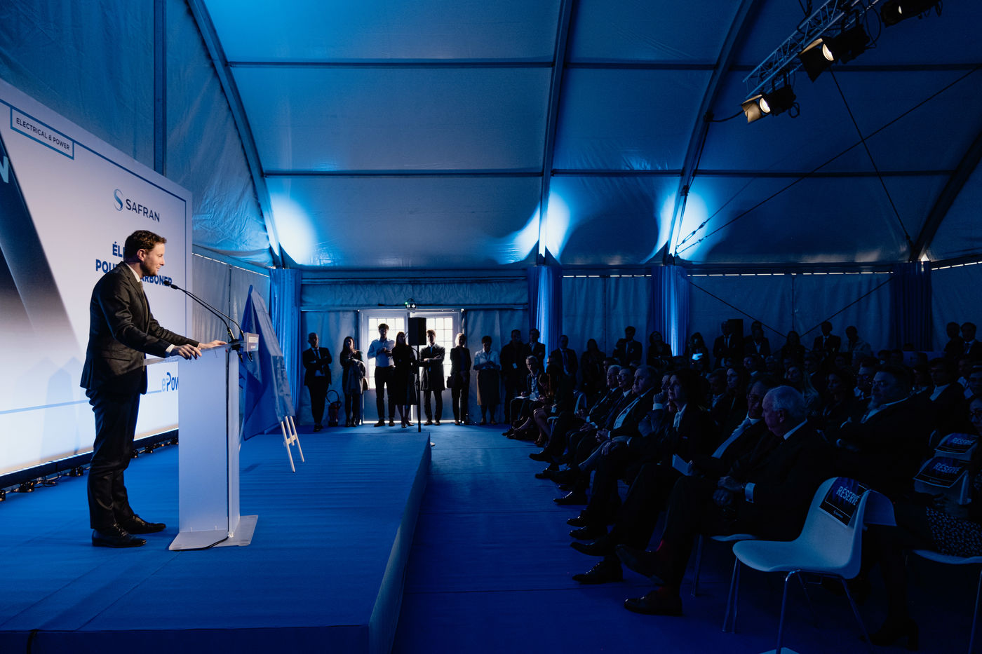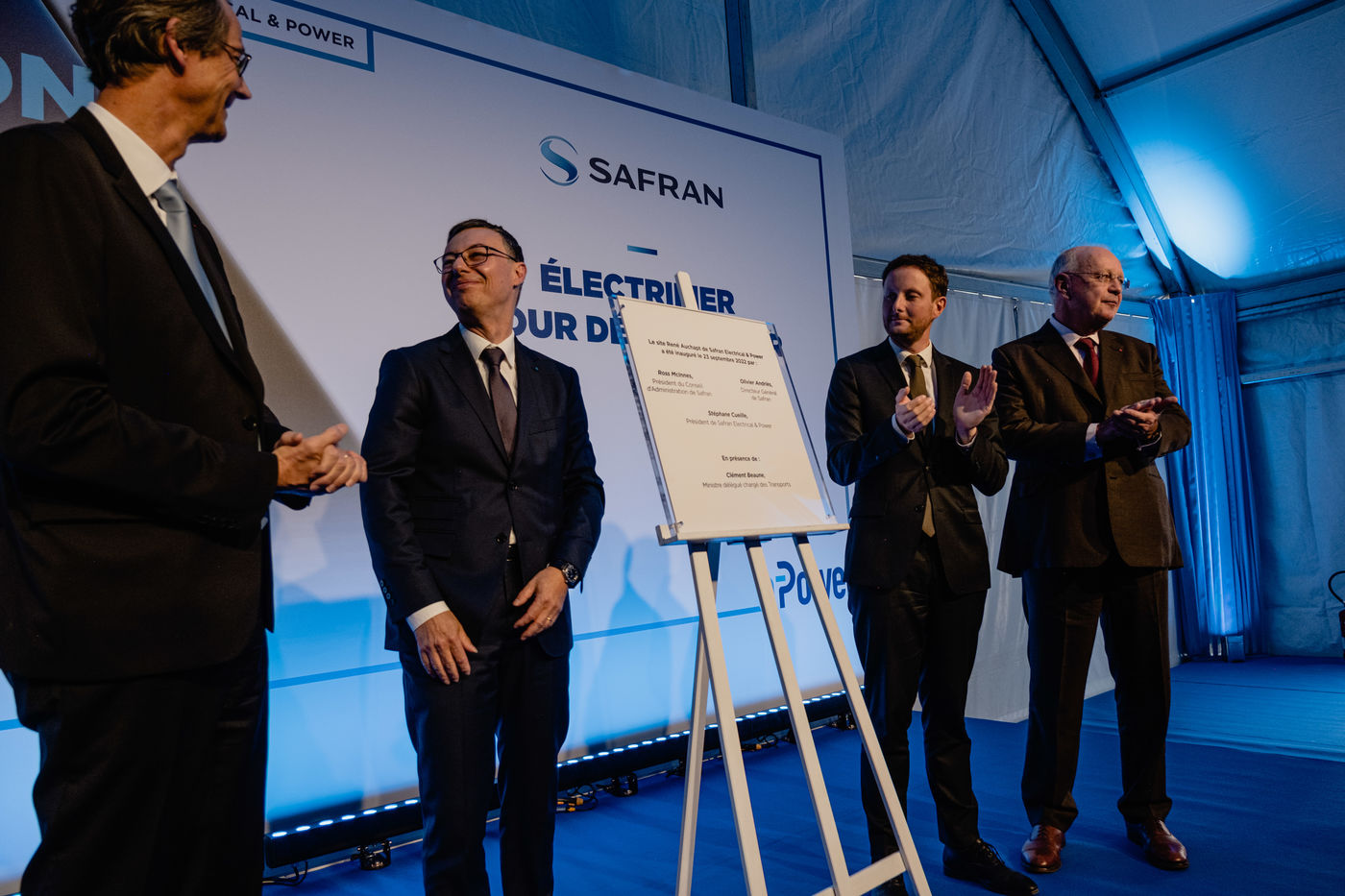 Clement Beaune, Minister of Transport, visiting Creteil to inaugurate the Rene Auchapt site, Safran Electrical&Power's research and development centre.
