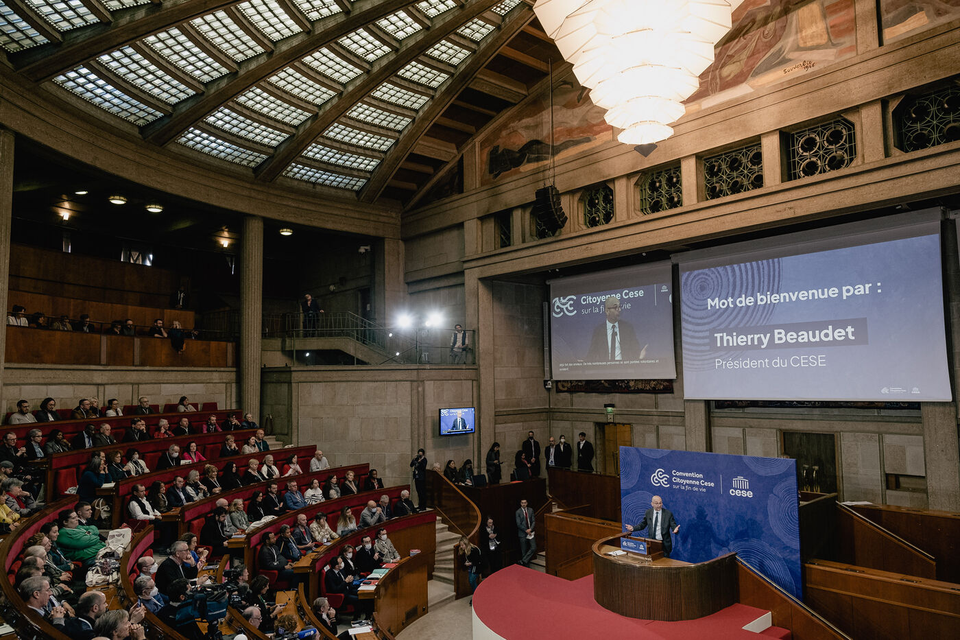 Lancement de la convention citoyenne sur la fin de vie au CESE, en présence d Elisabeth Borne, Olivier Veran, Agnes Firmin le Bodo, Thierry Beaudet.