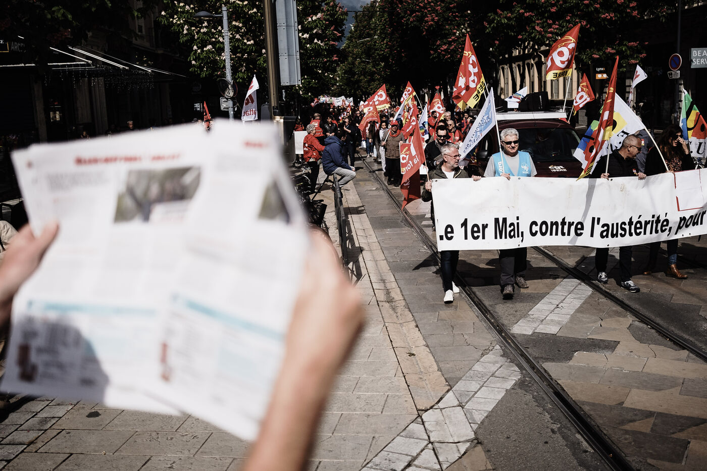Demonstration on the occasion of National Workers' Day, from Alsace Lorraine to Pazc Paul Mistral in Grenoble, Isère.