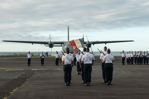 Military handover ceremony between Lieutenant-Colonel Romain Gaston and Lieutenant-Colonel Karine Gauthier. An officer specialising in human resources, she is the first woman to head the French Air Force's 181 Air and Space Base at Gilot on Reunion Island. This ceremony continues to support the Air Force's commitment to highlighting the potential of women in the army in all positions.