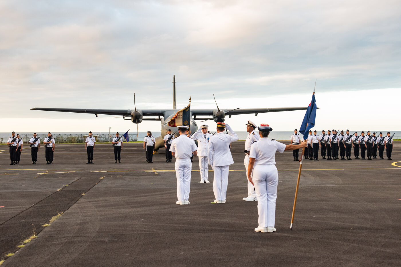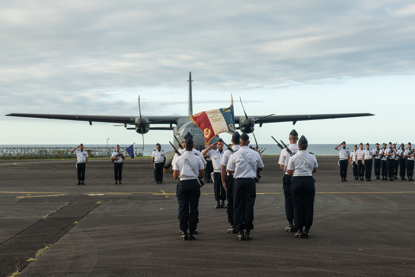 Cérémonie militaire de passation de commandement entre le lieutenant-colonel Romain Gaston et la lieutemenat-colonel Karine Gauthier. Officier spécialiste des ressources humaines, elle la première femme à prendre la tête de la base aérienne 181 de l'Armée de l'air et de l'Espace à Gilot sur l'île de la Réunion. Cette cérémonie continue d'appuyer la volonté de l'Armée de l'Air et de l'Espace de mettre en avant le potentiel des Femmes au sien de l'armée à tous les postes.