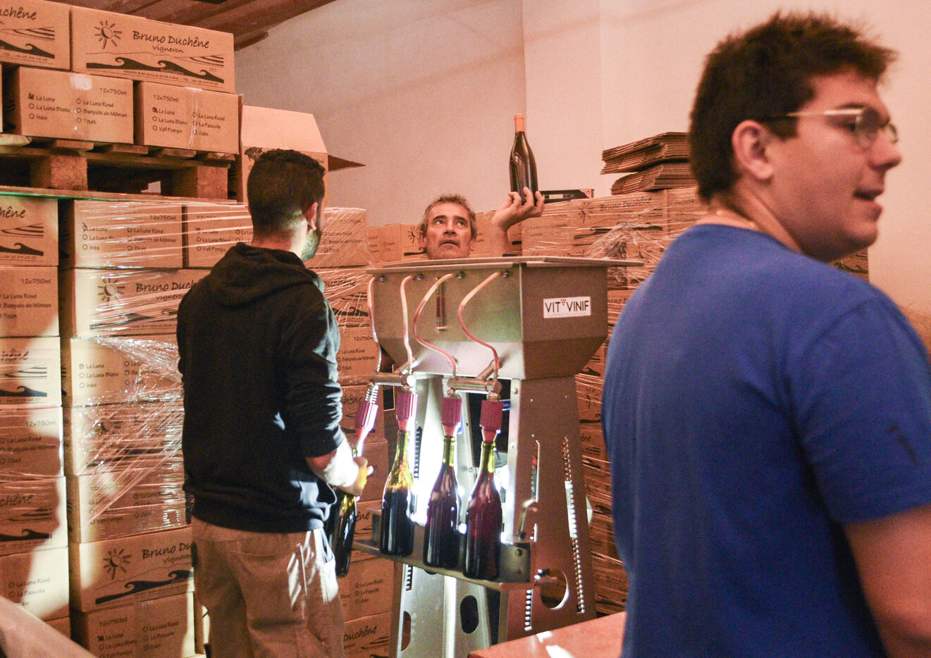 Bruno Duchêne est un vigneron passionné et indépendant qui a racheté des terres de vignes en 2002 à M. Castex, un ancien de la région dont il a appris beaucoup par le faire et l’écoute. Ses vignes sont à Banyuls-sur-Mer. Bruno cultive ses vignes en terrasse, laboure à la main, au chenillard. Il laisse certaines parcelles de ses vignes enherbées, et parfois débroussaille en fonction des besoins en eau de la terre. Il produit des vins nature et ne fait 3 à 4 traitements par an en agriculture biologique. Il développe un modèle économique entre la culture de ses 4 hectares de vignes ainsi que l’achat de raisin à d’autres vigneron·nes qu’il vinifie lui-même. Bruno dit qu’il faut observer, essayer, s’adapter à la vigne. Lui ne semble être qu’un alchimiste au milieu de ses vignes, dépendant du bon vouloir de la nature.