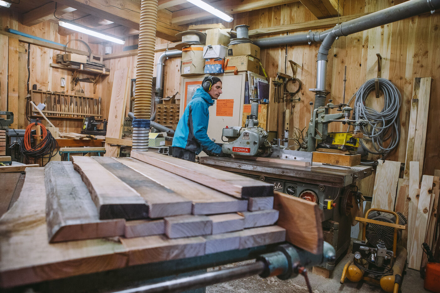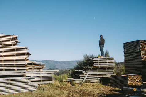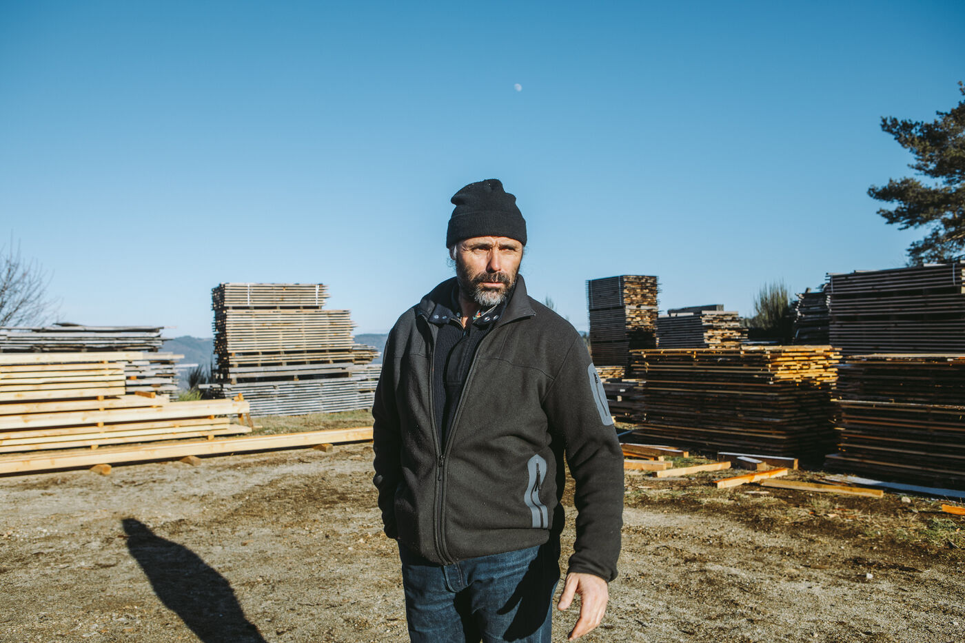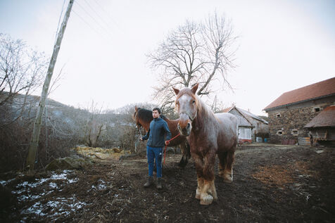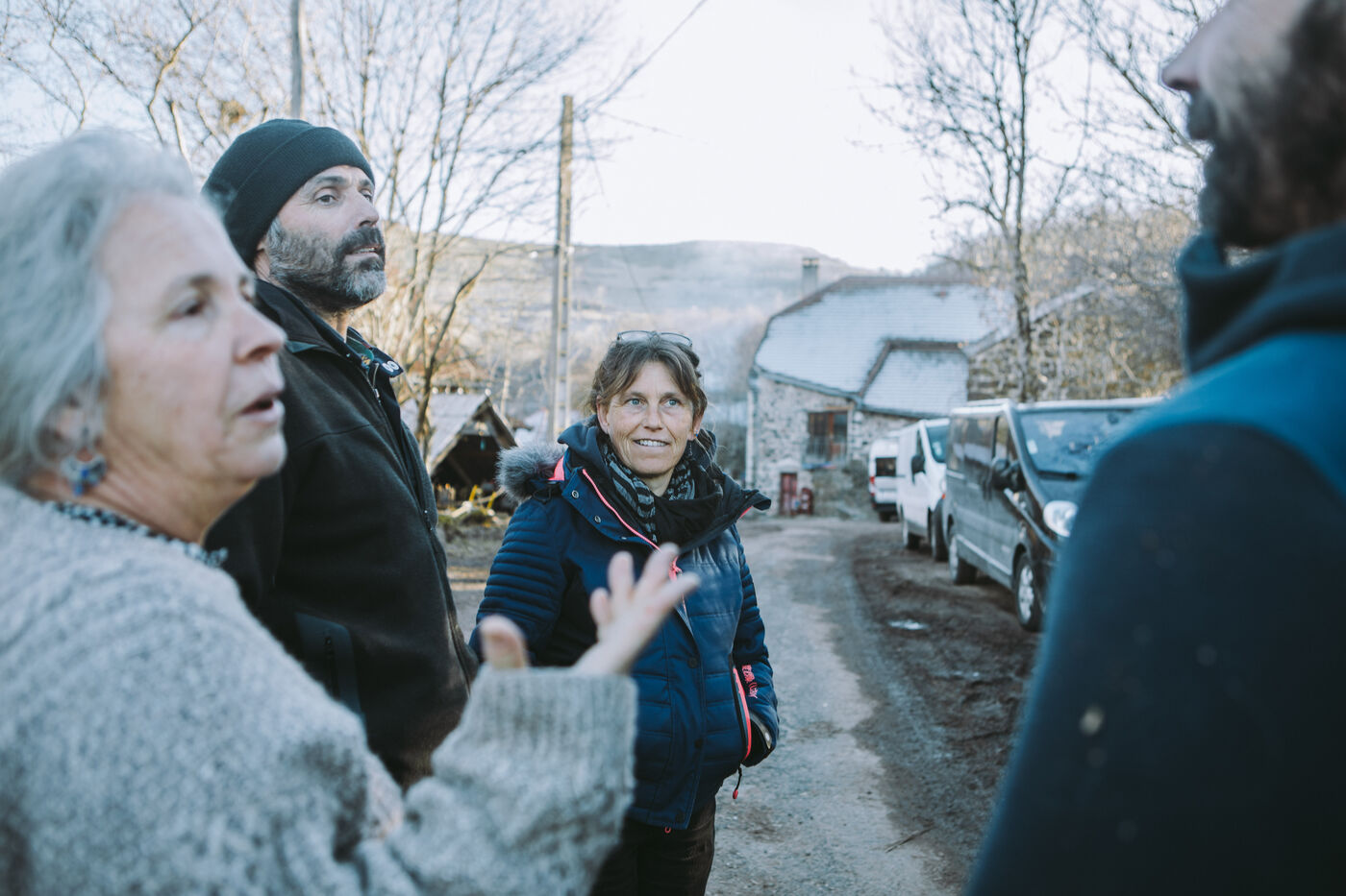 France - Treynas, 21 janvier 2024, sur la commune de Chaneac en Ardèche, la communauté agricole auto-gérée Longo Maï s'explique après avoir abattu sept chiens appartenant à des chasseurs, le samedi 16 décembre 2023. Selon ses membres, une meute d'une dizaine de chiens a attaqué leurs animaux. Retour sur les circonstances et l'histoire de cette communauté ardéchoise vivant principalement de l'exploitation forestière et de l'agriculture raisonnées. Photographies de Marie Julliard / Hans Lucas.