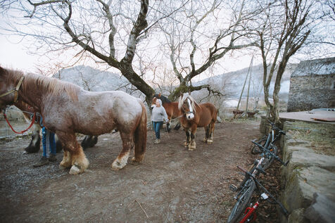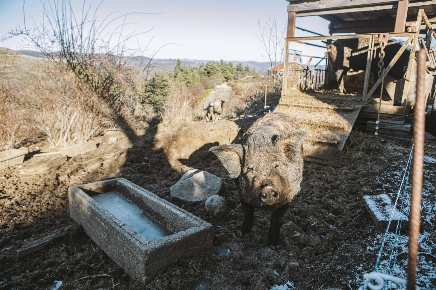 France - Treynas, January 21, 2024, in the commune of Chaneac in the Ardèche, the Longo Maï self-managed farming community explains itself after shooting seven dogs belonging to hunters on Saturday December 16, 2023. According to its members, a pack of around ten dogs attacked their animals. Here's a look back at the circumstances and history of this Ardèche community, whose main source of income is sustainable forestry and agriculture. Photographs by Marie Julliard / Hans Lucas.