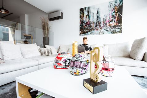 ANDORRE - Andorre-la-Vieille, 28 juillet 2021, rencontre avec le leader du championnat du monde Moto GP chez lui, dans son appartement en Andorre, pendant la trève estivale. Fabio Quartararo dans son quotidien chez lui, ses entrainements, ses trophées. Photographie de Marie Julliard / Hans Lucas.