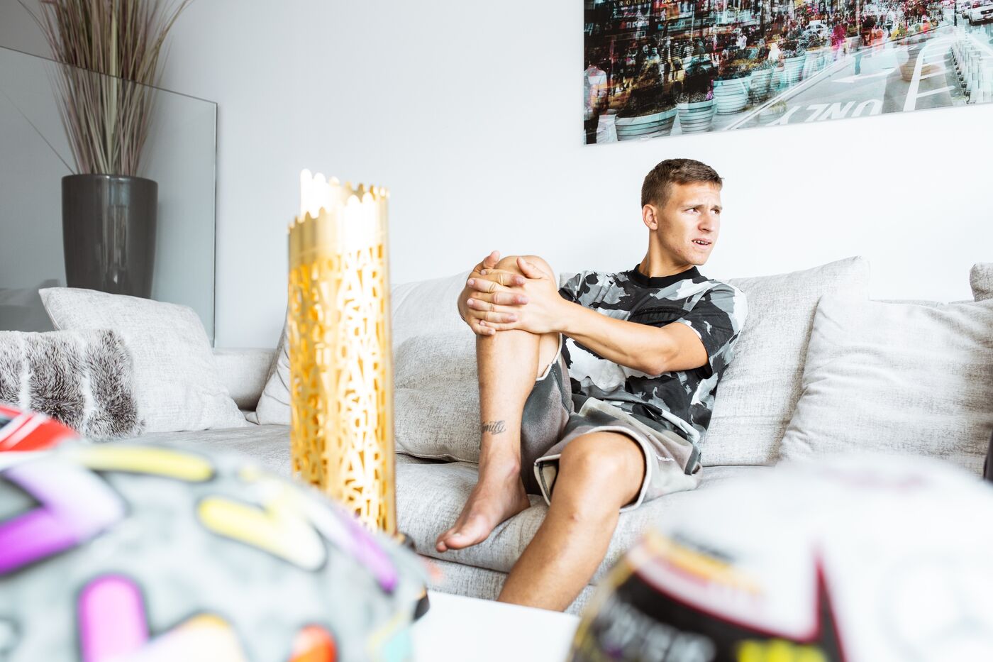 ANDORRA - Andorra la Vella, July 28, 2021, meeting with the Moto GP world championship leader at his apartment in Andorra during the summer break. Fabio Quartararo in his daily life at home, his training sessions, his trophies. Photo by Marie Julliard / Hans Lucas.
