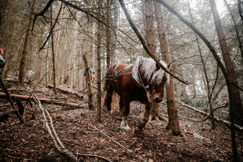 FRANCE - ENVIRONNEMENT - DÉBARDAGE À CHEVAL TRADITIONNNEL EN FORÊT