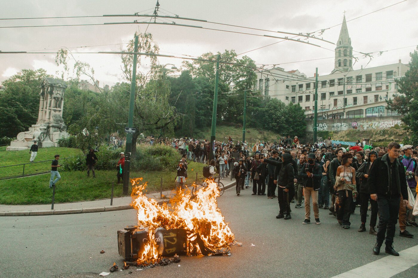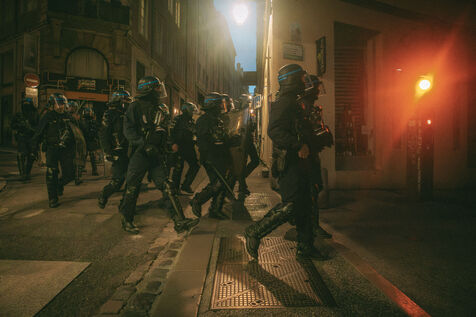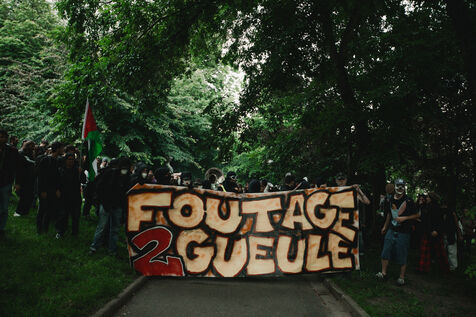 FRANCE - Lyon, Friday, May 24, 2024, some forty organizations (Lyon insurrection, Action justice climat Lyon, les Soulèvements de la terre Lyon, l'assemblée des Gilets jaunes Lyon et environs...) called for mobilization in Lyon this Friday, May 24, on the occasion of the second edition of the "carnaval des Pentes", "festive and demanding" to protest against "the Olympic Games, the war in Palestine and Macron's reforms". Despite a ban on the event by the prefecture, demonstrators gathered in Place de la Croix-Rousse. Photography by Marie Julliard / Hans Lucas.