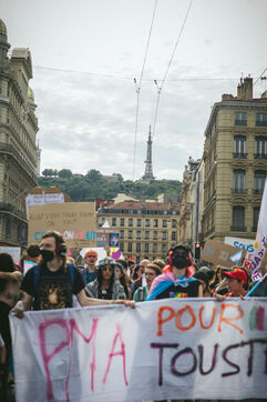 Following a national call launched by Acceptess-T, Espace Santé Trans, Fransgenre, Inter-LGBT, Organisation de Solidarité Trans (OST), OUTrans, SOS Homophobie and Toutes Des Femmes, and in the face of attacks on trans people's rights in both the Assembly and the Senate, the GA Riposte Trans Lyon organized the initiative. The demonstration left Place Louis Pradel at 5pm to arrive at Place Guichard.