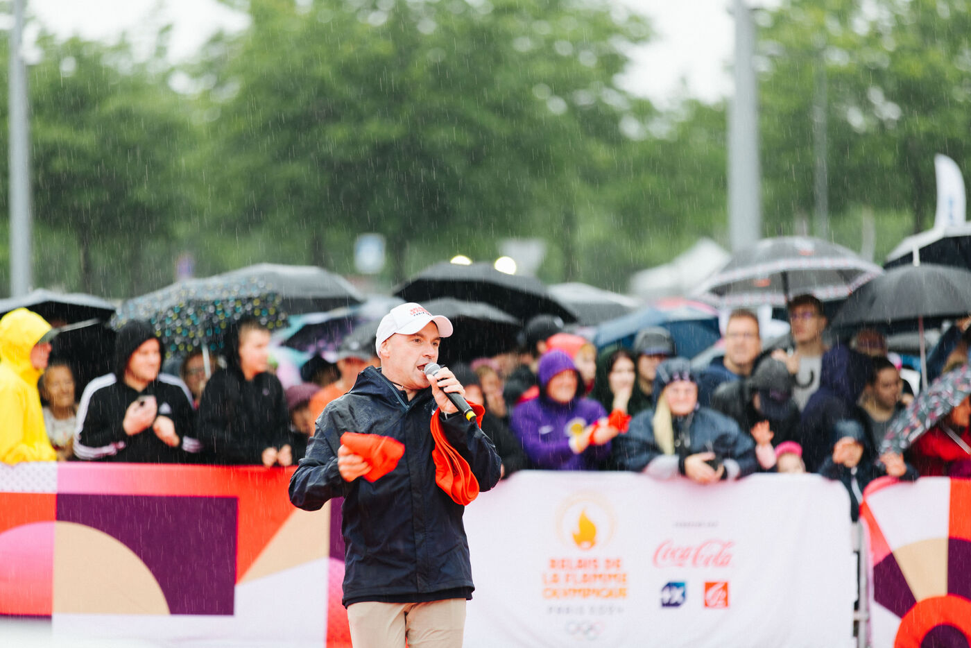 The passage of the Olympic flame through the Loire was accompanied by a great deal of fervor, despite heavy rain in the capital. Icon and captain of ASSE's golden generation in the 1970s, Jean-Michel Larqué once again made Geoffroy-Guichard and Saint-Étienne shine with the lighting of the flame. Also present on the forecourt were Amélie Oudéa-Castéra, Minister for Sport and the Olympic and Paralympic Games, and Gaël Perdriau, Mayor of Saint-Etienne.