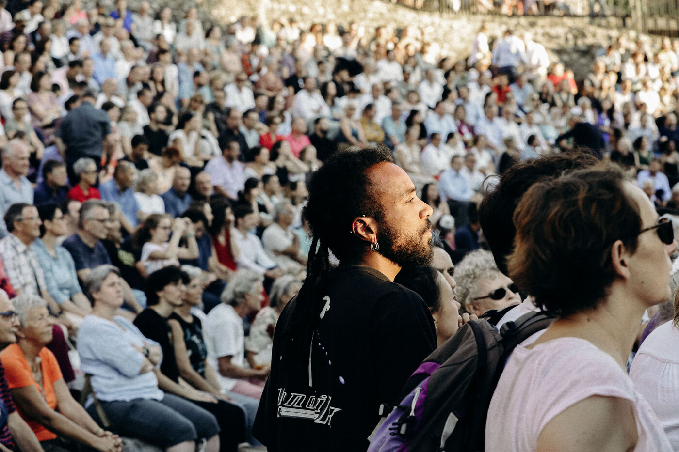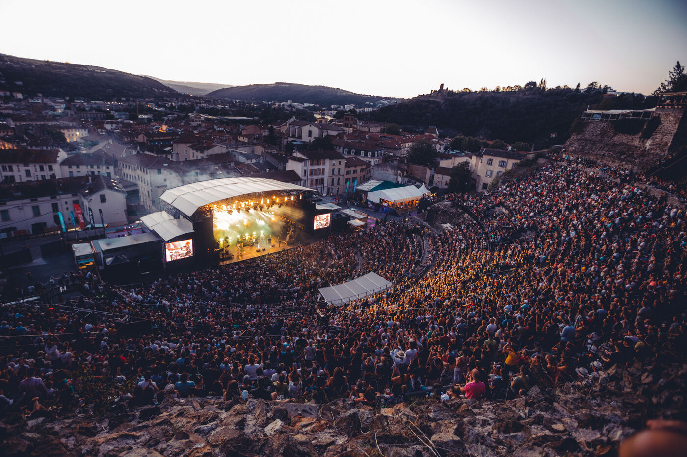 FRANCE - Vienne, 2022 - 2023, photographies d'ambiance prises durant le festival Jazz à Vienne, à Vienne en Isère (38), en 2022 et 2023. Public, ambiance, théâtre, infrastructures... Photographie de Marie Julliard / Hans Lucas.