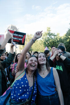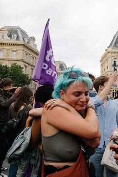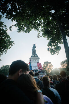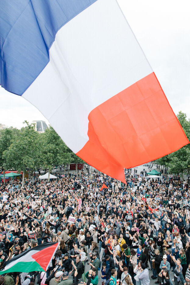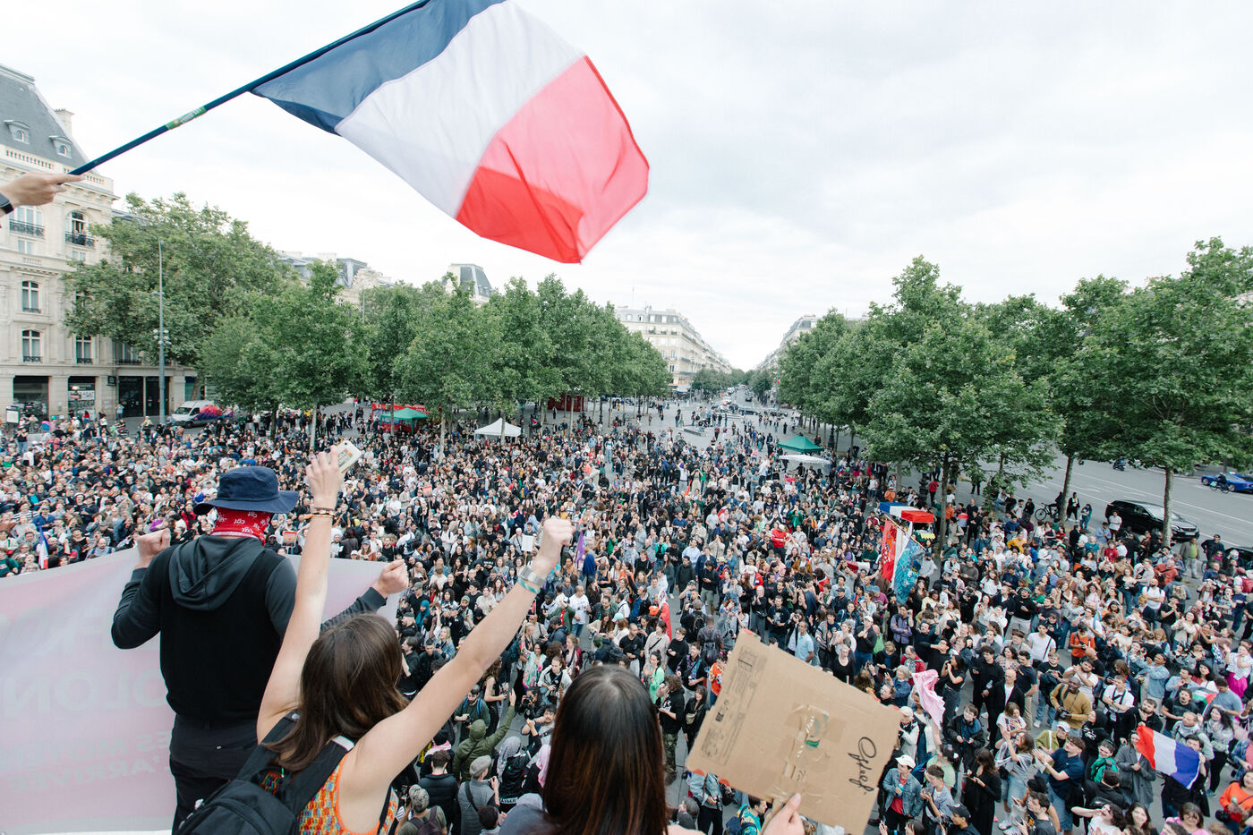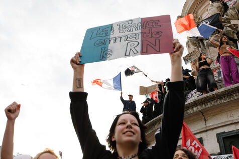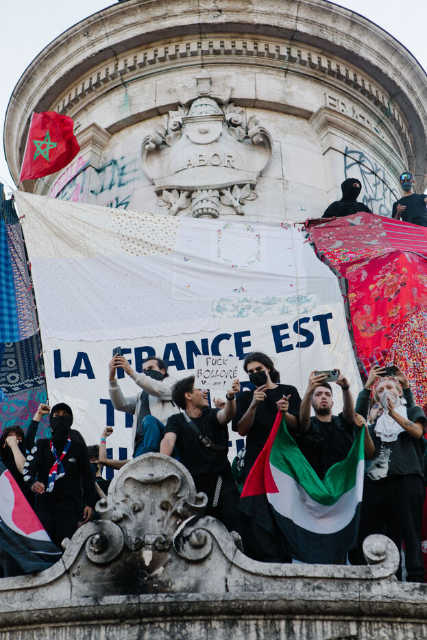 FRANCE - Paris, Sunday, July 7, 2024, demonstration at Place de la République following the result of the legislative election to form a new assembly. Photography by Marie Julliard / Hans Lucas.
