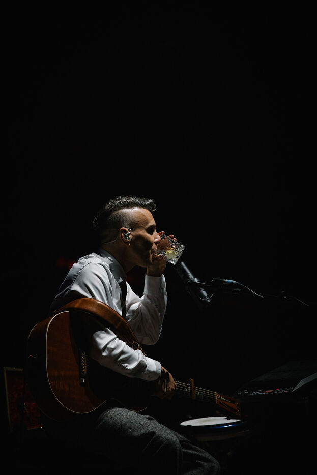 FRANCE - Vienne, lundi 08 juillet 2024, concert de Asaf Avidan au théâtre antique de Vienne en ouverture de la 43ème édition du festival de Jazz à Vienne. Auteur, compositeur et chanteur israélien connu pour ses mélodies pop-rock et son timbre de voix haut-perché et écorché. Photographie de Marie Julliard / Hans Lucas.