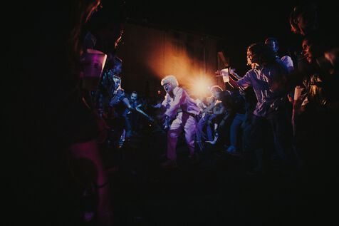 The members of the legendary San Francisco collective shared their completely offbeat universe on the square in front of the Hôtel de Ville, offering an extraordinary set, from electo to hip-hop, via afrobeat, reggae ton, techno or musette, as part of the In festival of the 36th edition of Aurillac's street theater festival. With DJ Flakes, David Guetto, Tommy Clean, El Diablo, Nyls aka Nyls, Pickle Boy, Johnny la Flèche, Honey Badger, L.i.a, Lucifer.