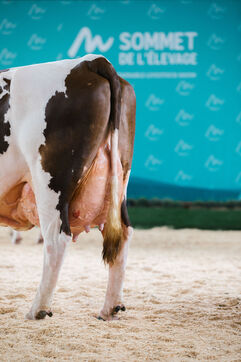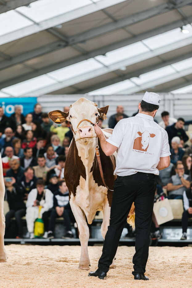 FRANCE - Cournon d'Auvergne, October 02, 2024, Montbéliarde dairy cattle show in hall 4 of the Grande Halle, at the Sommet de l'élevage. Photography by Marie Julliard / Hans Lucas.