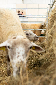 FRANCE - Cournon d’Auvergne, 03 octobre 2024, photographie d’illustration d’ovins (mouton) et de bovins (vache) lors du Sommet de l’Elevage. L’occasion pour la nouvelle ministre de l’Agriculture, Annie Genevard, de se confronter à des éleveurs remontés face aux difficultés du secteur notamment concernant le problème de la fièvre catarrhale ovine (FCO), également appelée maladie de la langue bleue ou en anglais Bluetongue (BT), c’est une maladie virale touchant majoritairement les moutons et qui peut également affecter les bovins, les chèvres et d'autres ruminants sauvages. Photographie de Marie Julliard / Hans Lucas.