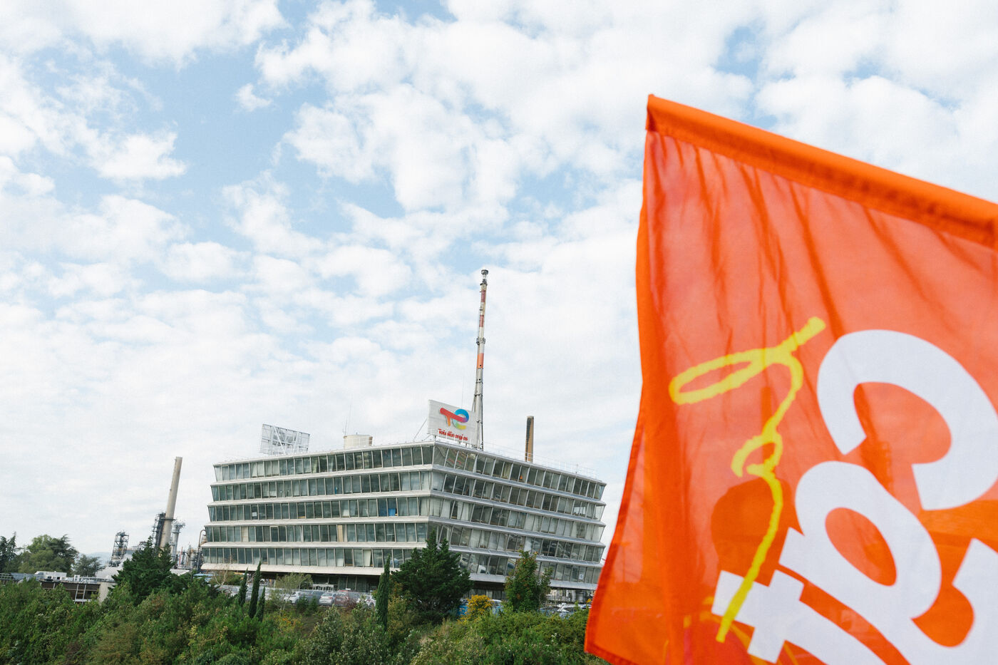 FRANCE - Lyon, mercredi 10 septembre 2025, piquet de grève et manifestants devant la raffinerie Total à Feyzin organisé par le syndicat CGT. Photographie de Marie Julliard / Hans Lucas.