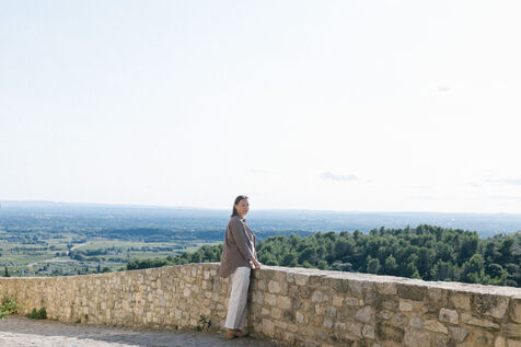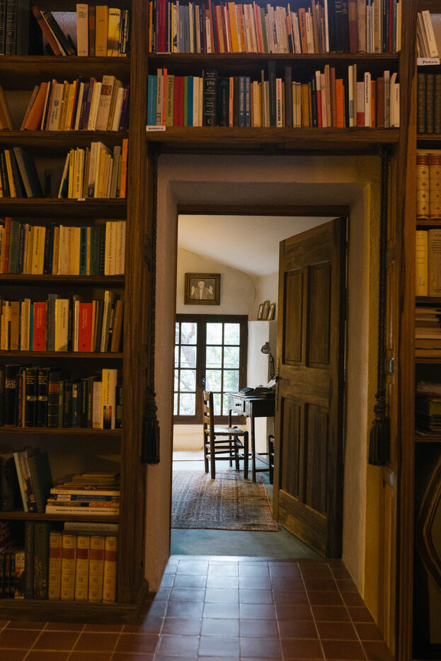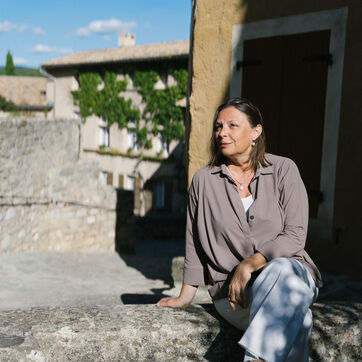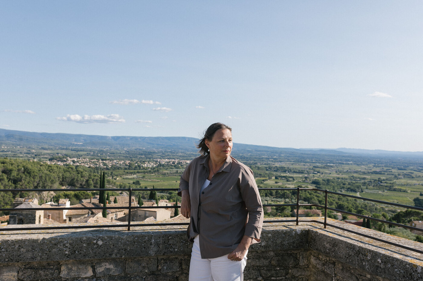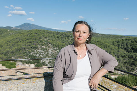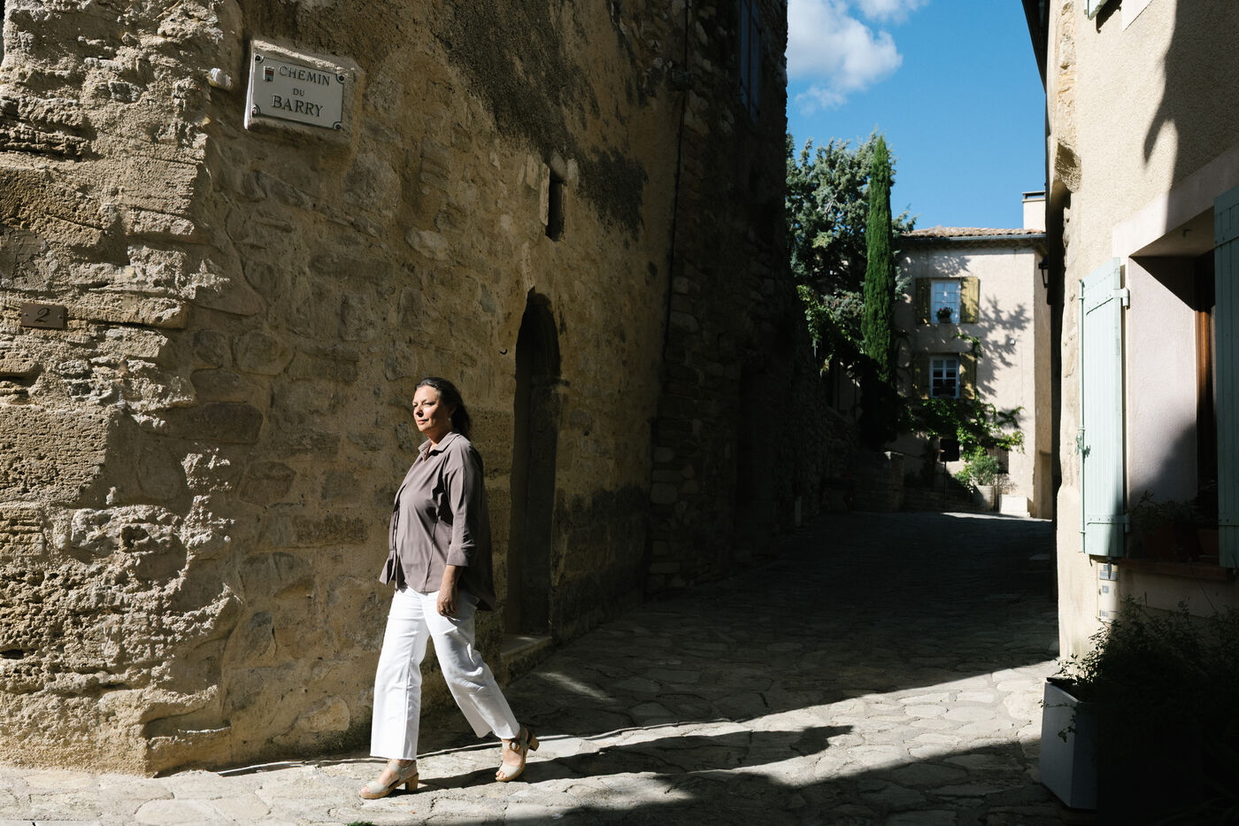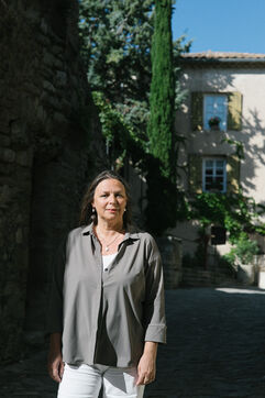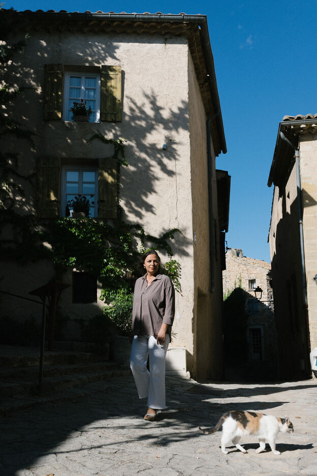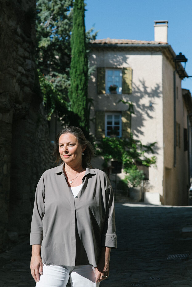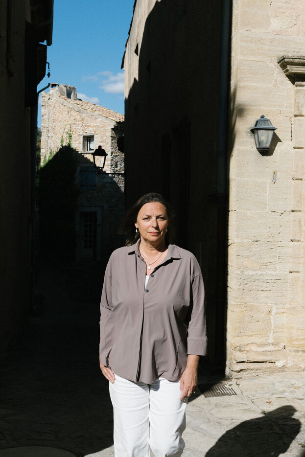 FRANCE - Le Barroux, Thursday, September 11, 2025, meeting with Dutch-speaking Belgian writer Sigrid Bousset in the Provençal village of Le Barroux in Vaucluse to promote her biographical book about the writer Ivo Michiels, who lived in this village for forty years. Born in 1969, Sigrid Bousset is a Belgian writer, playwright, and literary curator. She co-founded and directed Passa Porta, the international house of literature in Brussels, until 2014. Photograph by Marie Julliard / Hans Lucas.