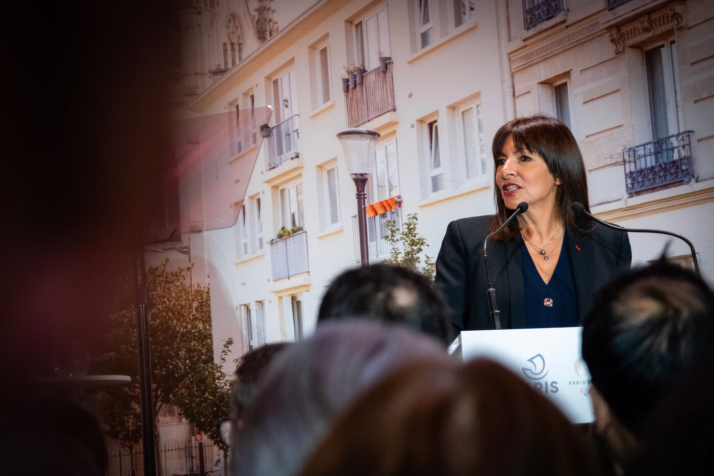 Paris mayor Anne Hidalgo presented her wishes for 2024 to the capital's elected representatives on January 2024 at the town hall.