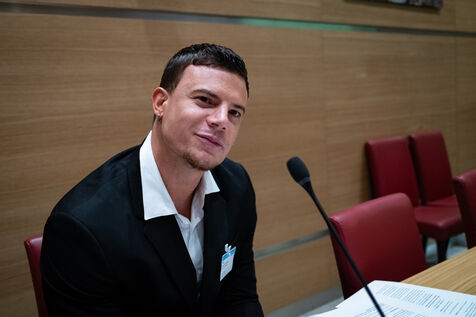 L'influenceur Adrien Laurent, plus connu sous le nom d'AD Laurent, a été auditionné par la commission parlementaire sur les effets psychologiques de TikTok à l'Assemblée nationale à Paris, France le 10 juin 2025.