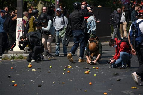 traditional May Day labour union march in Paris. Demonstration was disrupted by the violence between protesters and police.