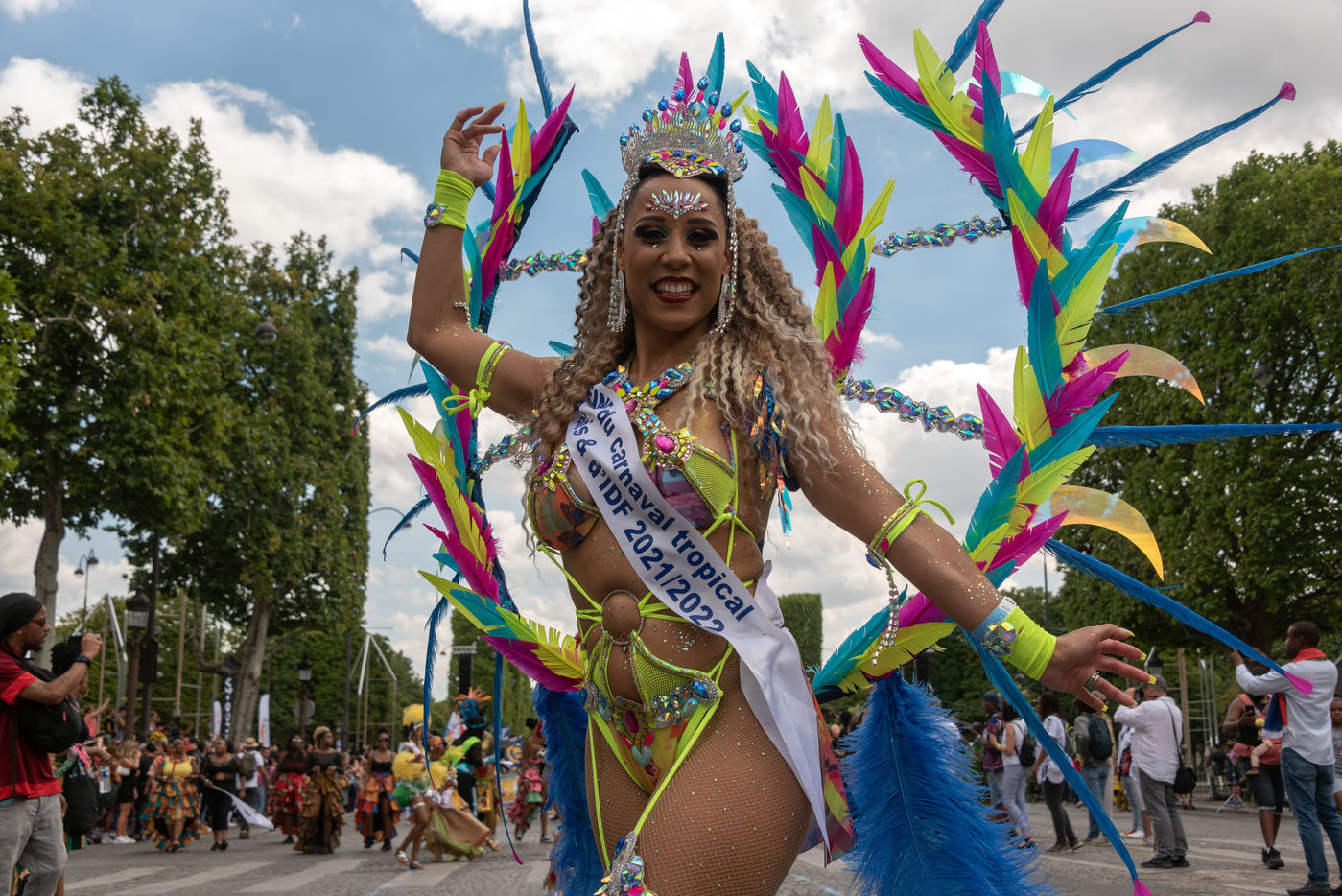 20ème edition du Carnaval tropical de Paris sur les Champs-Elysees, pietonnisés pour l occasion. Célébration des outre-mer, de l'Europe des 3 oceans.