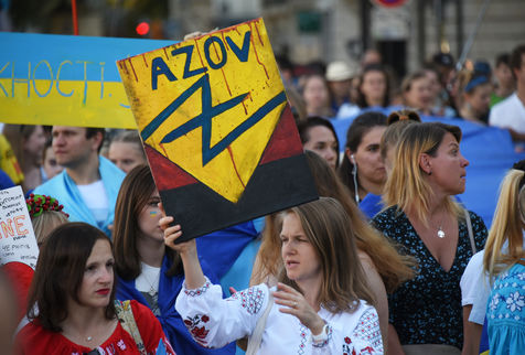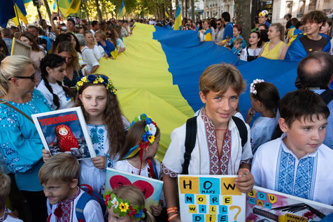 Marche ukrainienne en l'honneur du jour de l'indépendance de l'Ukraine et contre l'invasion de l'Ukraine par la guerre russe a eu lieu à Paris.