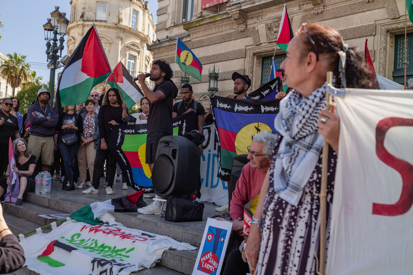 Several hundred people, including supporters of the Palestinian people and members of the Kanak community, marched together under the same slogans to "fight imperialism and colonization", while bombardments continue in Gaza and Kanak people denounce murders by loyalist militias against a backdrop of electoral reform.