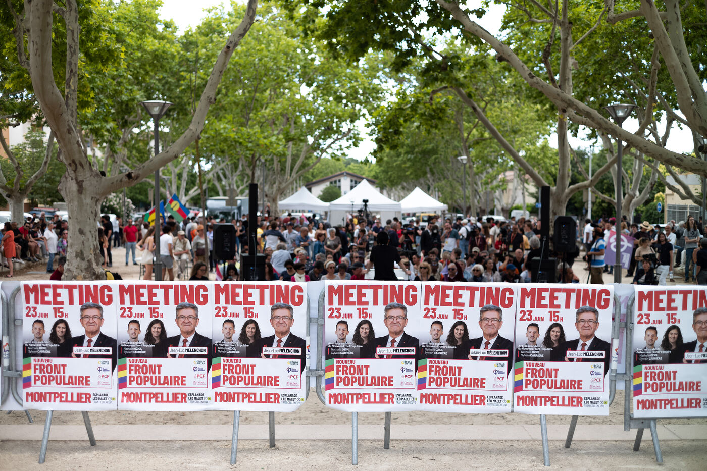 Plusieurs centaines de personnes étaient présentes sur l'esplanade Leo Malet à Celleneuve, quartier de Montpellier pour assister au meeting du Front Populaire. Engagé dans la campagne des élections législatives anticipées des 30 Juin et 7 Juillet 2024, Jean-Luc Mélenchon était également présent afin de soutenir deux candidats issus du parti de La France Insoumise, Nathalie Oziol et Sylvain Carrière.