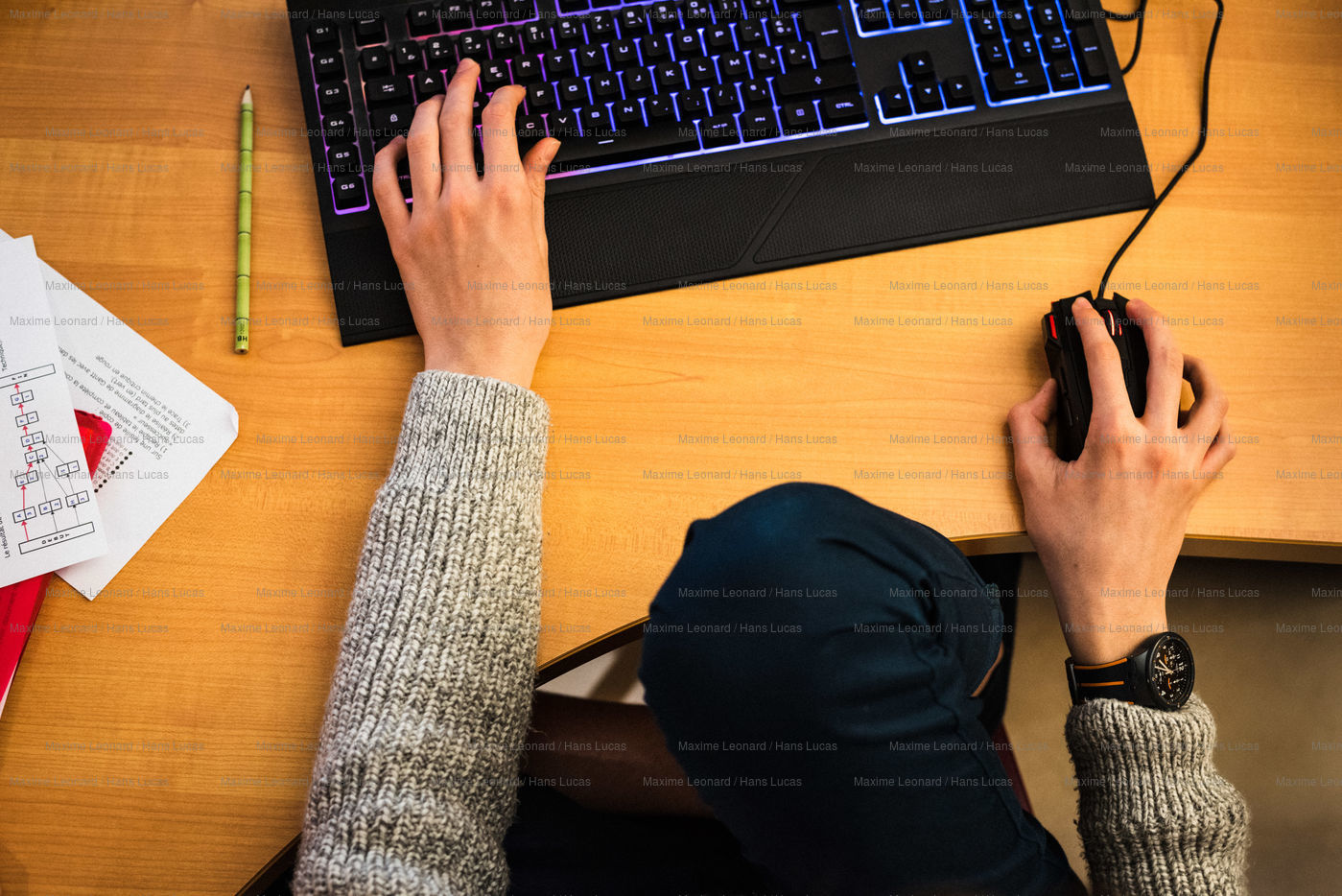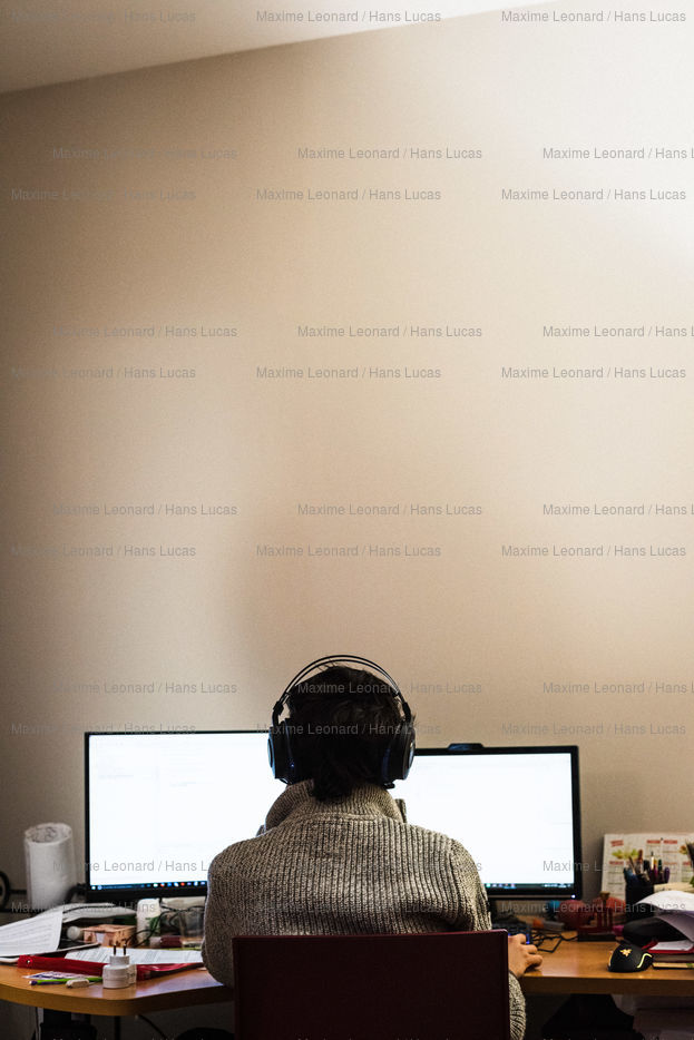 Children taking online courses from their homes in Toulouse, France during the COVID-19 lockdown period.