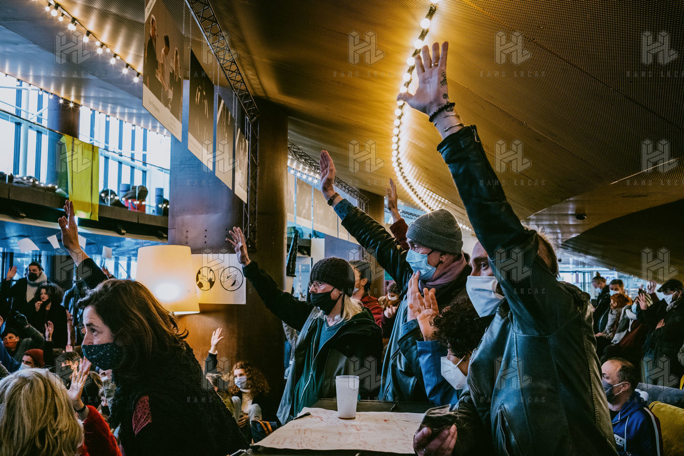 The theatre is now opened to the public in order to collectively build actions that will support their demands.