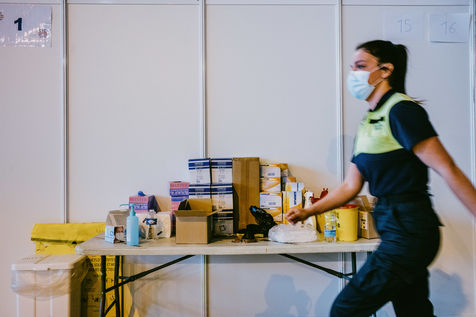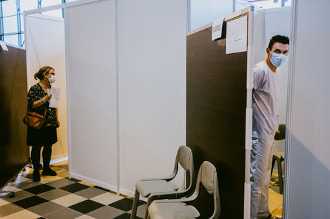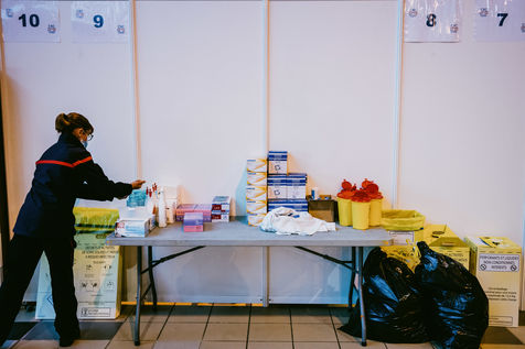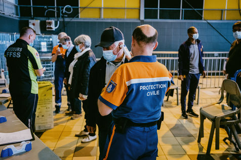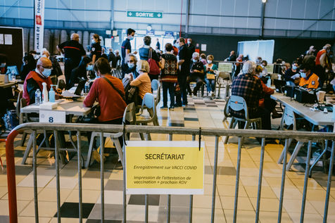 A vaccination centre opened in Toulouse at the end of March 2021 in hall 8 of the former exhibition centre on the Ile du Ramier. Volunteers, firemen, students, doctors and nurses take care of patients who have made an appointment by telephone according to age and pathology criteria. The centre currently vaccinates more than 2000 patients per day with Pfizer vaccines.