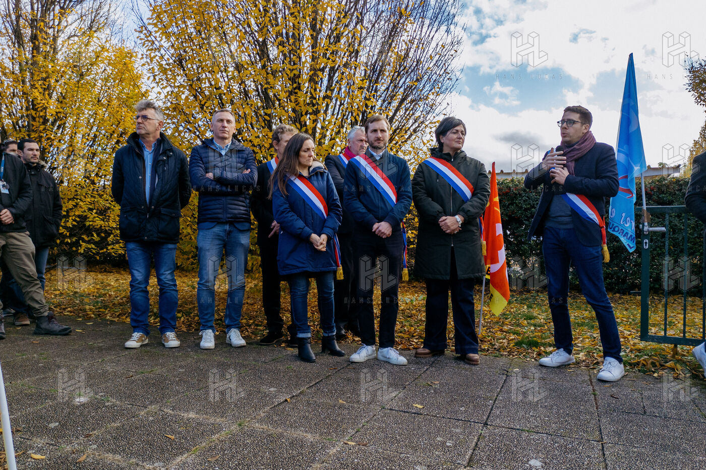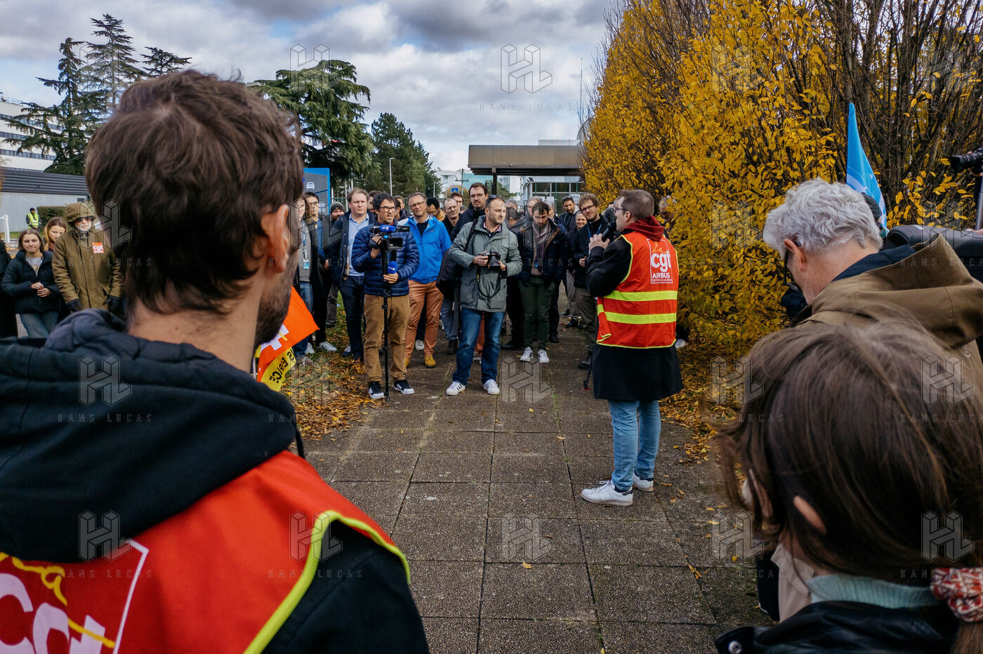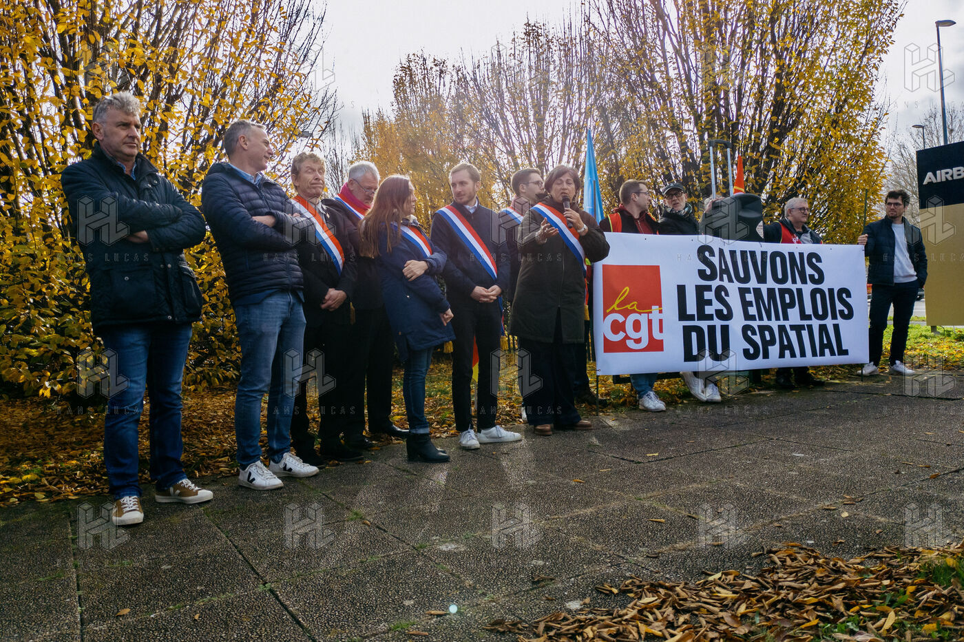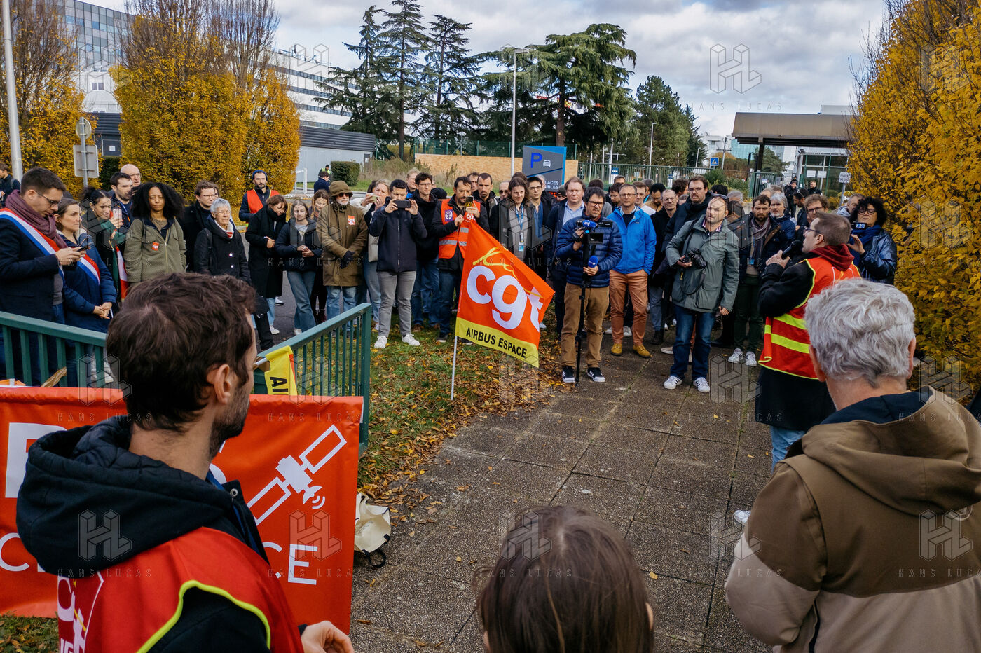 EMPLOYEE GATHERING IN FRONT OF AIRBUS DEFENCE & SPACE