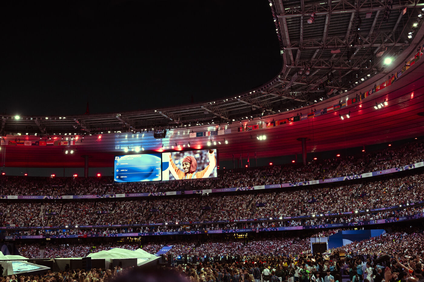 The Closing Ceremony of the Paris 2024 Olympic Games at the Stade de France as a spectator. After the acclaimed athletes and volunteers entered the stadium, the artistic performances followed: a ring climb with dancers, a concert by Phoenix and Angèle, speeches by Tony Estanguet and Thomas Bach, the passing of flags with a Tom Cruise stunt and a fireworks finale with Yseult. A festive evening to celebrate the success of the Paris Games, and pass the torch to the Paralympic Games to come.