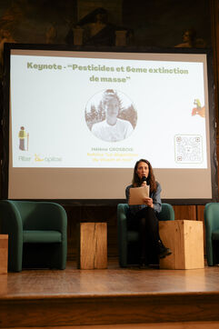 Helene Grosbois, author and campaigner for the living world, at the launch of her book La disparition du vivant et moi, published by Marabout.