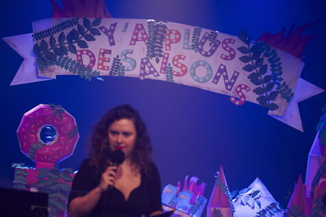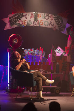Spectacle et podcast Y'a plus de saisons crée et produit par Swann Perisse. À quoi ressembleront nos vies si on ne fait rien pour stopper la crise climatique ? Avec autodérision et beaucoup de taquinerie, Swann Périssé pose la question à des spécialistes de l’écologie. Histoire d’exploiter à fond le potentiel comique de la fin du monde. Série de photos issus des enregistrement avec le député François Ruffin et Corentin de Chatelperron l'ingénieur co-fondateur de Biosphere experience.