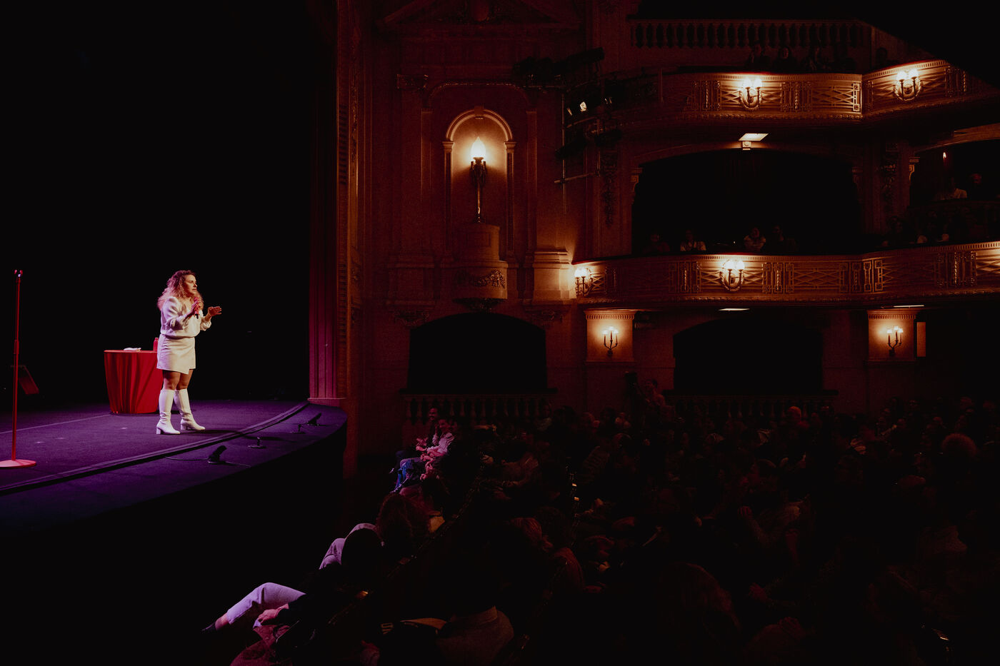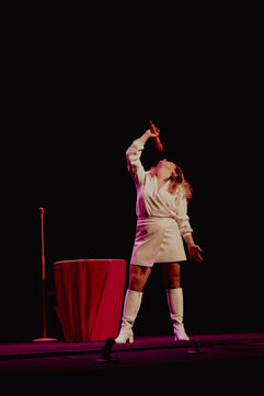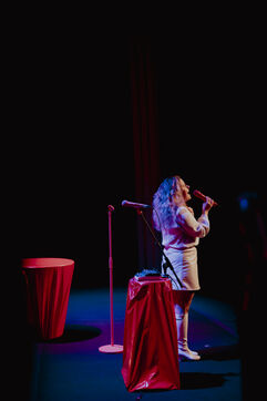 Calme de l'humoriste Sawnn Perisse. Elle joue un spectacle de stand-up qui parle de colère, de randonnée, de sexe, de sextoys, de consentement, de haters, de lavement, de justice, d'écologie, et surtout d'indignation
