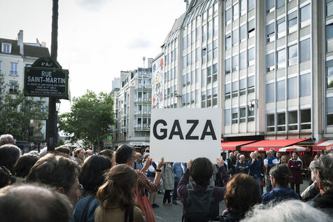 Our silence is a cry" rally in Paris at Place Beaubourg in support of Gaza. Participants remained silent for 30 minutes in protest. A manifesto was signed by a number of public figures, including Claire Nouvian, Yann Arthus-Bertrand, Hervé Kemph and Lilian Thuram.