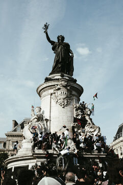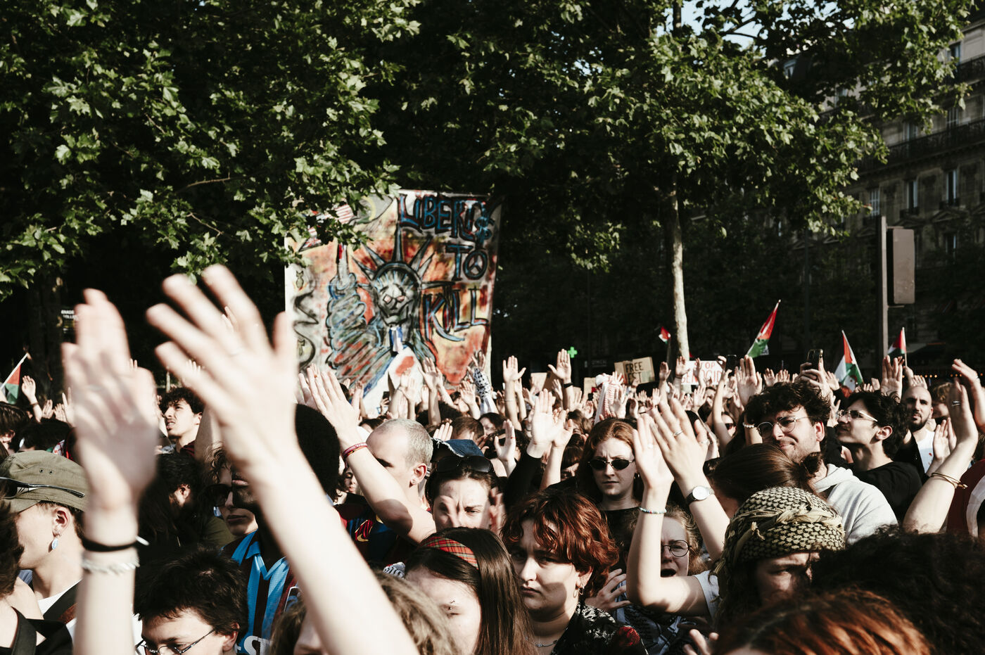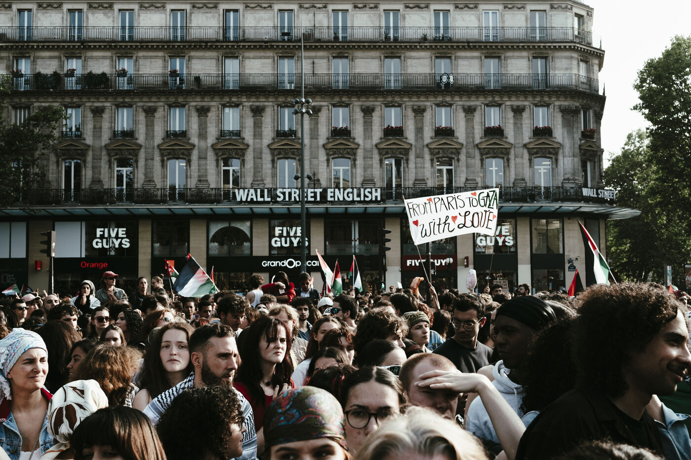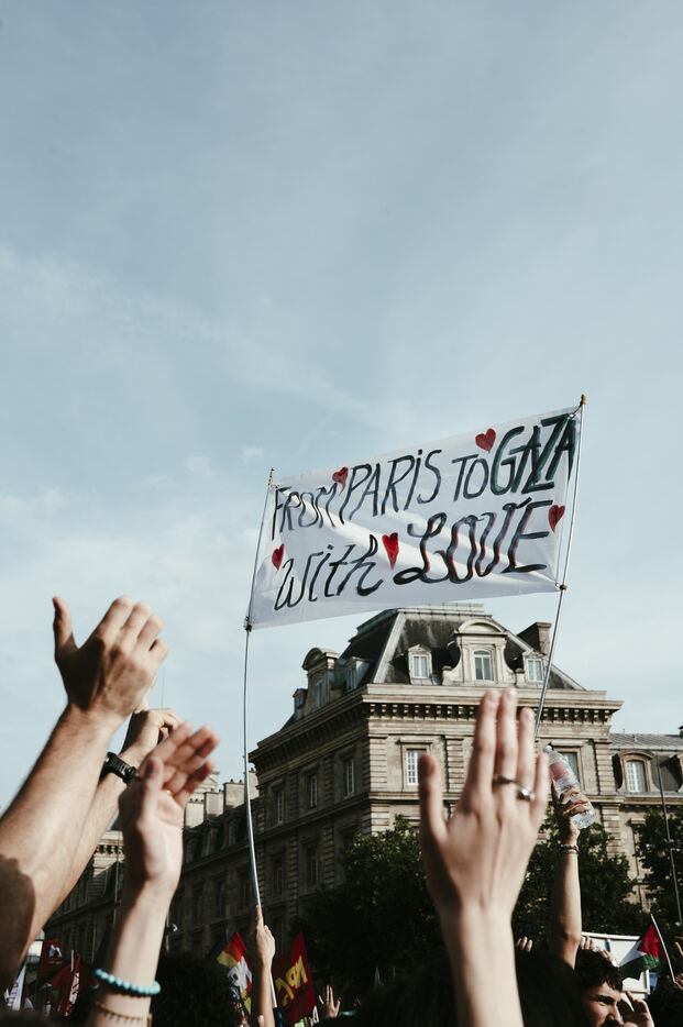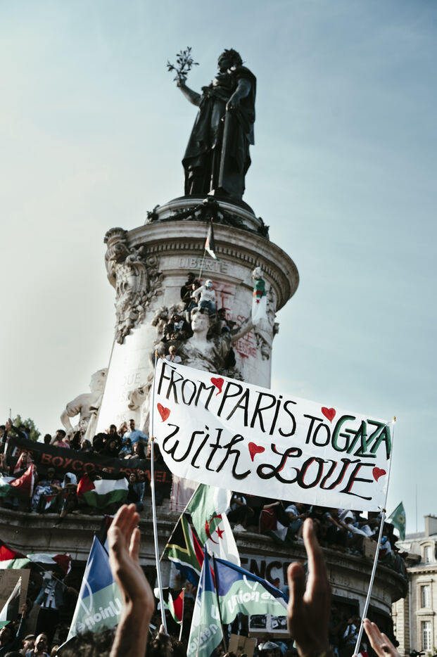Rally following the arrest of activists and journalists and the boarding of the Freedom Flotilla Madleen, and in support of the people of Gaza, against the ongoing genocide and for an immediate ceasefire, Place de la République.