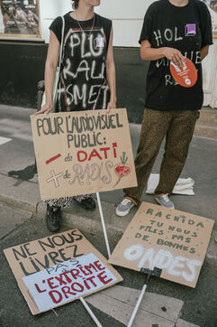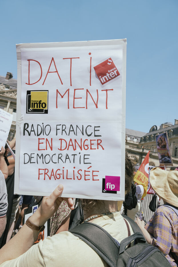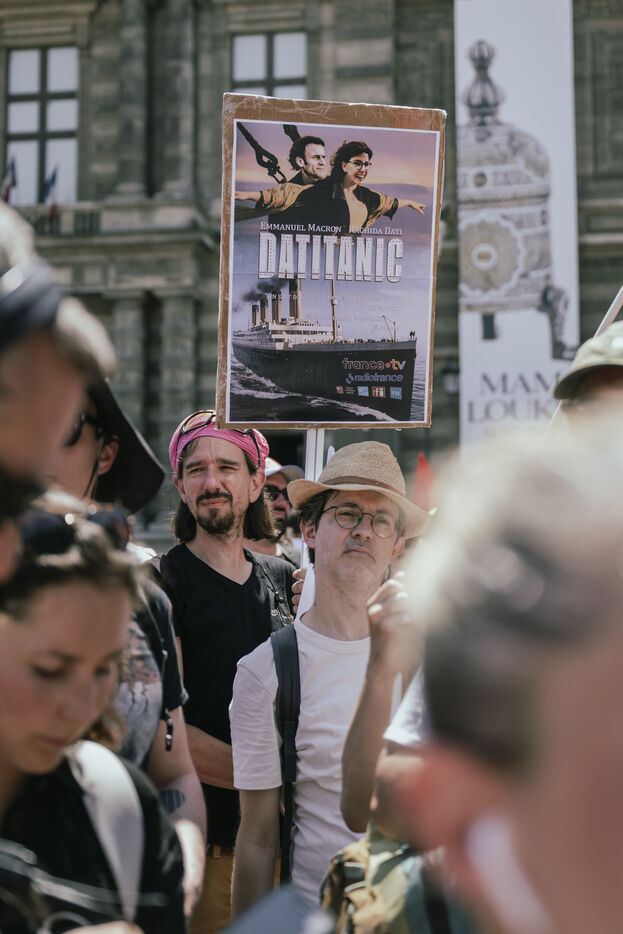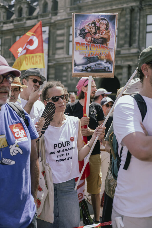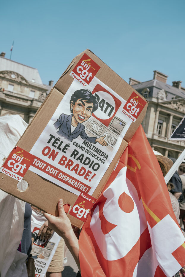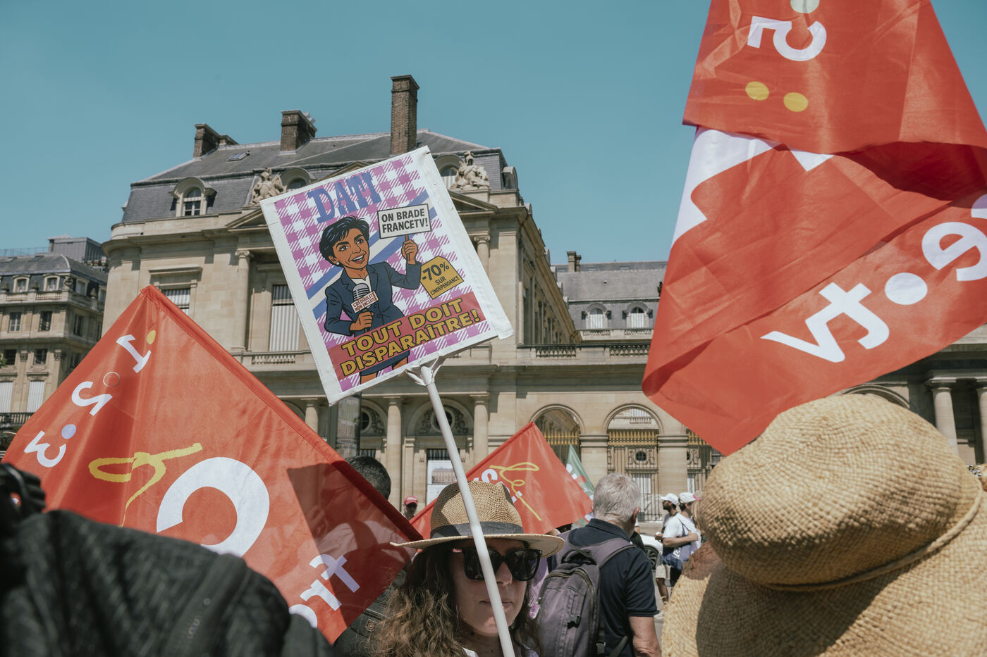 Manifestation contre la holding de l’audiovisuel public porté par la ministre de la Culture Rachida Dati. Une mobilisation qui fait suite à plusieurs jours de grève au sein de Radio France, de France Télévisions et de l’INA.
