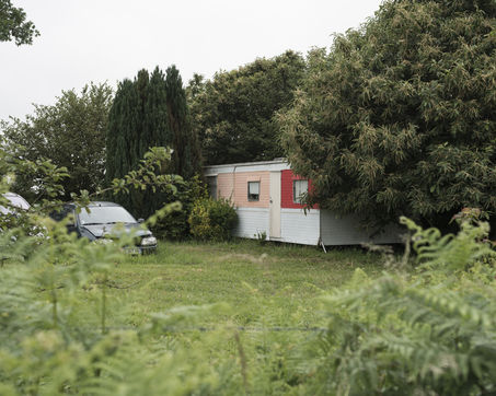 Accustomed to the margins, Marc Loyon photographs the architecture of the in-between and the landscape of transitions: peripheral, artisanal and suburban areas, agricultural zones and wilder landscapes constitute the raw material of his research, carried out here in immersion in the landscapes of the Bocage Mayennais. In residence since January 2020, the artist has carried out a patient work of location scouting and encounters. The exhibition presented at the Pontmain art centre bears witness to this demanding approach: in each of his photographs, the artist suggests rather than demonstrates, and takes distance while preserving a close-up view, delicately pointing out what the fields reveal, what the housing estates tell, when suddenly the brutal incision of the tarmac writes new lines on the soft earth. Powerful portraits accompany this crossing of the landscape: inhabitants who look at the surrounding territory from afar, as if to better invite our own to take their place.