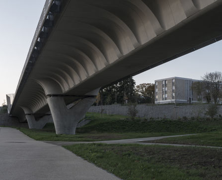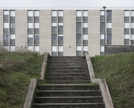 Fifty years after its construction, the cultural services of the University of Rennes 1 and the CROUS Rennes Bretagne invited photographer Marc Loyon, whose artistic approach focuses on the landscape and architectural ensembles, to take up a residency. At a time when the Beaulieu campus is undergoing major changes linked to the need to renovate residences and university buildings, and to the modification of the territory (construction of metro line B), this photographic residency was an opportunity not just for a strict inventory, but for a subjective look at the place, imbued with great empathy for all the people we met and photographed (students, CROUS and University staff). This residency gave rise to an invitation to wander between the cités U and the Beaulieu campus, to immerse oneself in large format outdoor photographs and to see an exhibition at the Diapason, a cultural venue of the University of Rennes1.