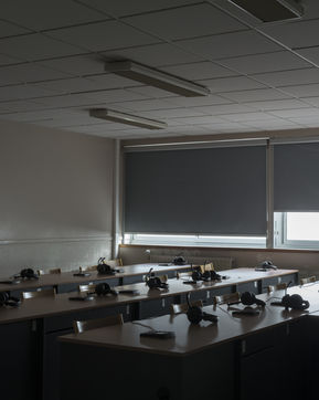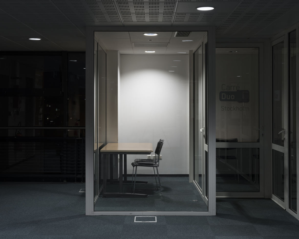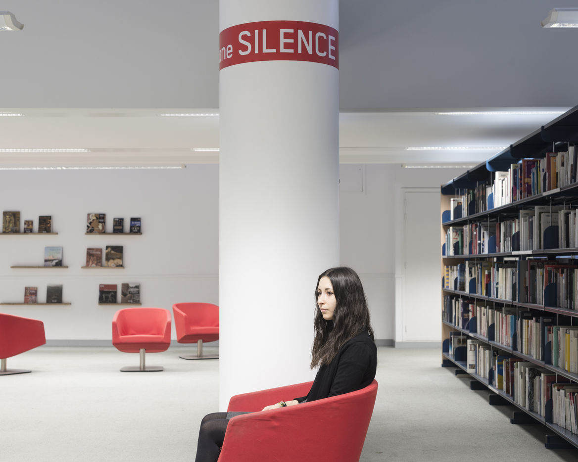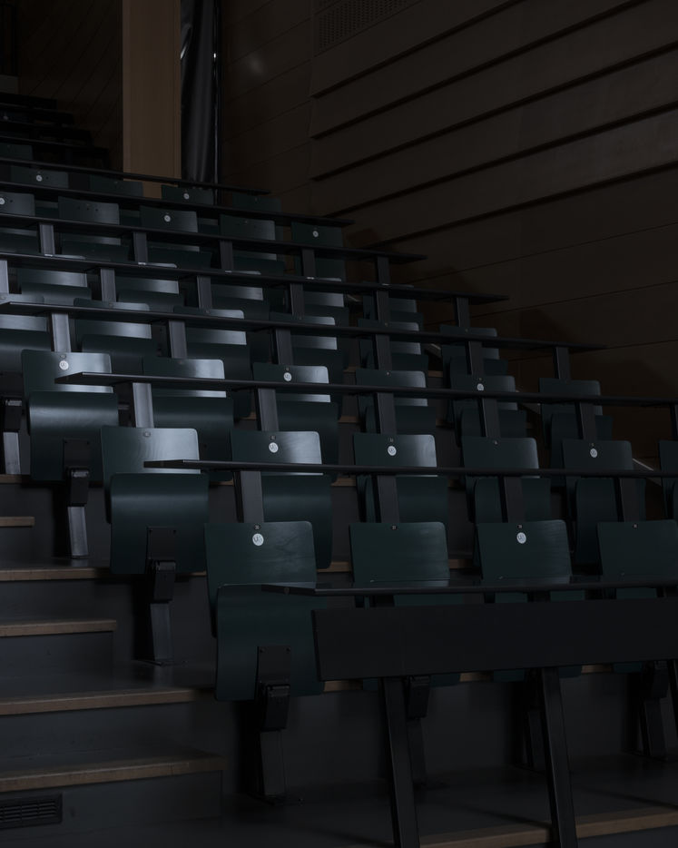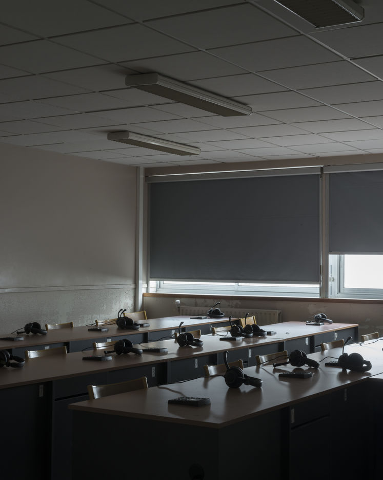 Claudine Combier, a lecturer at the University of Angers, HDR in clinical psychology and psychopathology within the CLiPsy research unit, and a speaker at the SSU (University Health Service) for students. The clearly sought-after objective was to combine the work of the laboratories, the richness of words and the thickness of images. By skilfully avoiding photojournalism or illustration, Marc Loyon has carried out a long-term project, patiently constructed and punctuated by several stays at the University. Like an anthropologist or a scientist, he began by observing, surveying the city of Angers, the campuses of St-Serge and Belle-Beille, by questioning and collecting testimonies. Later, it was the landscapes that he took hold of. Those fantasized in a period that was prevented, those so long deserted and dreamed of, to the point of approaching the most intimate territories of the rooms or student housing. Other interior views: amphitheatre, auditorium,