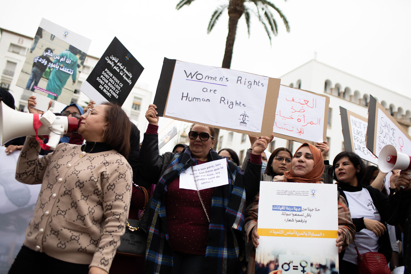Demonstration for the international day for women?s rights in Rabat, capital of Morocco. This mobilization was called by the Federation of Women?s Rights Leagues (FLDF). It was an opportunity for women to demand more rights, particularly in terms of inheritance, emancipation, the legalization of abortion, equality between parents, ...