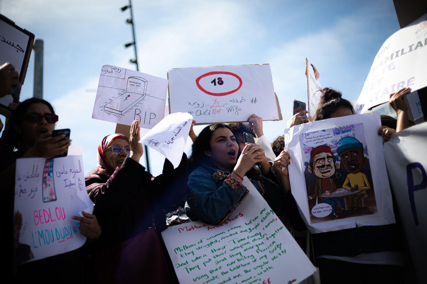 Among the demands is the complete overhaul of the Moudawana, 19 years after the last reform. The organizations and collectives demand that the Family Code prohibit and penalize child marriage, remove outdated forms of divorce, take into account and value the work of women in the home, establish joint parental authority (guardianship, custody and joint responsibility), allow women to be witnesses and also implement equality in inheritance. They also call for the prohibition of polygamy and the recognition by law of marriages of a Moroccan woman with a non-convertible non-Muslim. Among the requests, we also find the creation of an effective protection against violence against women, and the fight against femicides, which includes the legalization of abortion as well as a revision of the Penal Code including the repeal of provisions that penalize the exercise of individual freedoms and a strengthening of the fight against pedocriminality.