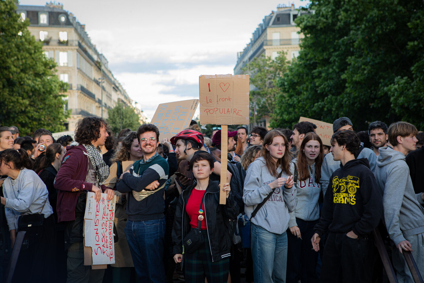 On Monday 10 June 2024, thousands of people gathered in several French cities to protest against the extreme right, following the European elections, the dissolution of the National Assembly and the early parliamentary elections. In Paris, the rally was held on the Place de la Republique. At around 10pm, the rally turned into a spontaneous demonstration in the streets of Paris before being dispersed by the police an hour later.