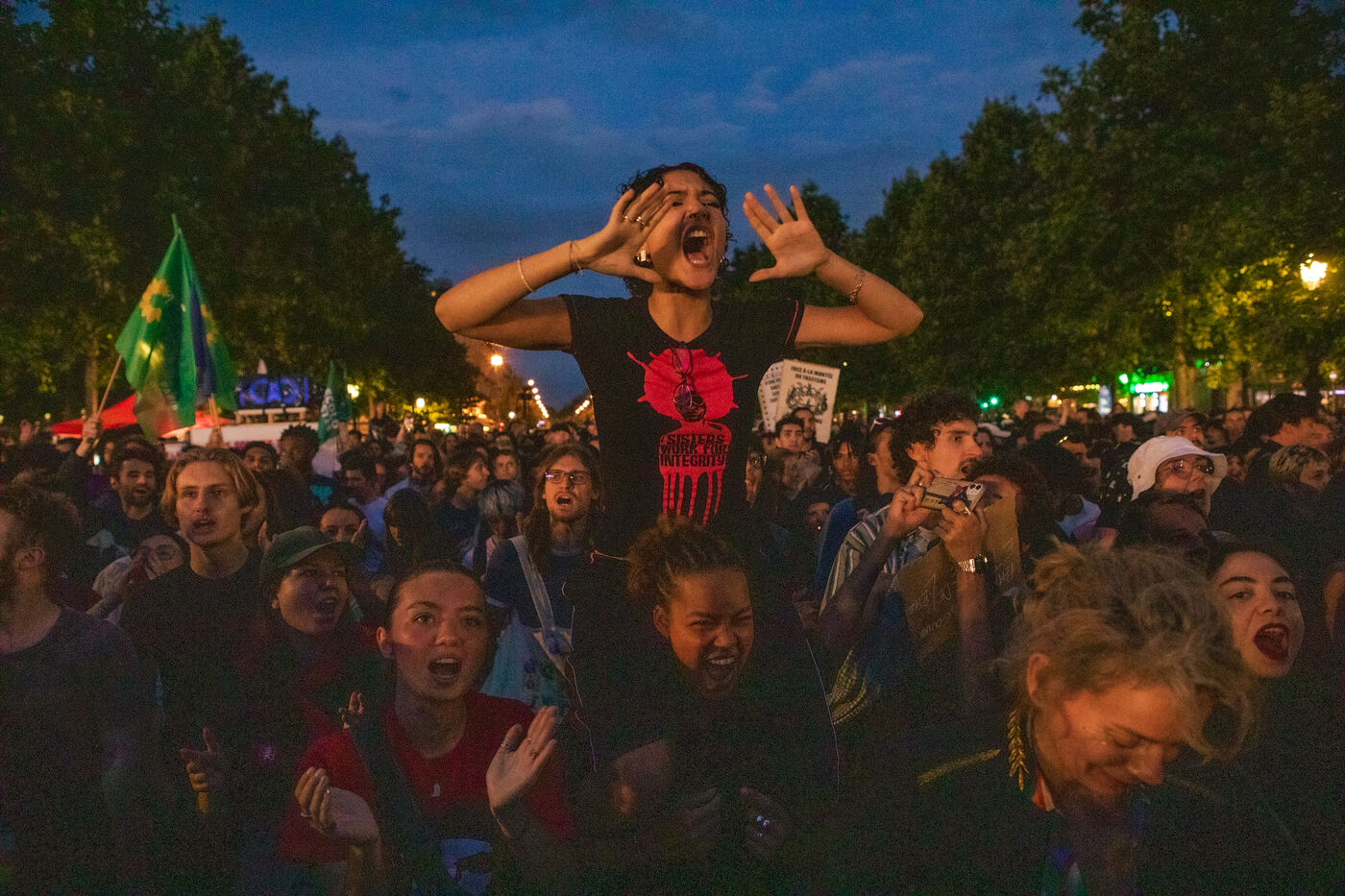 Manifestation contre l extreme droite (RN) organise a l appel du Front Populaire, Place de la Republique a Paris. Cette manifestation fait suite au premier tour des élections legislatives provoque par le President et a score important de l extreme droite.
