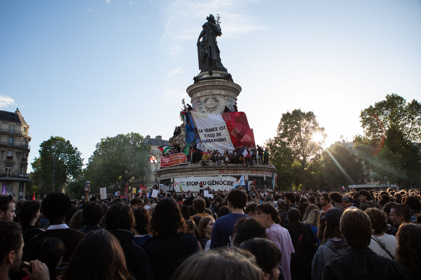 Rassemblement Place de la Republique suite aux resultats du second tour des elections legislatives a l'appel du Nouveau Front Populaire.